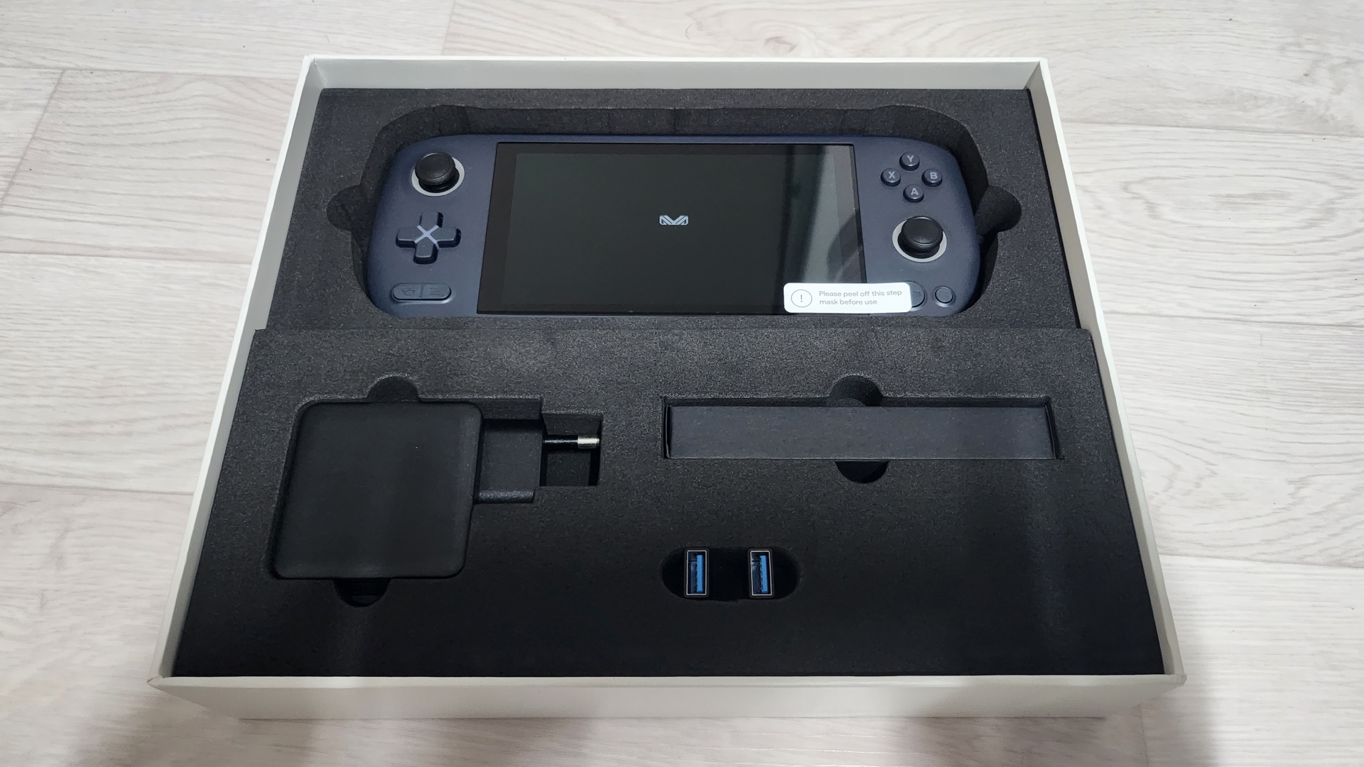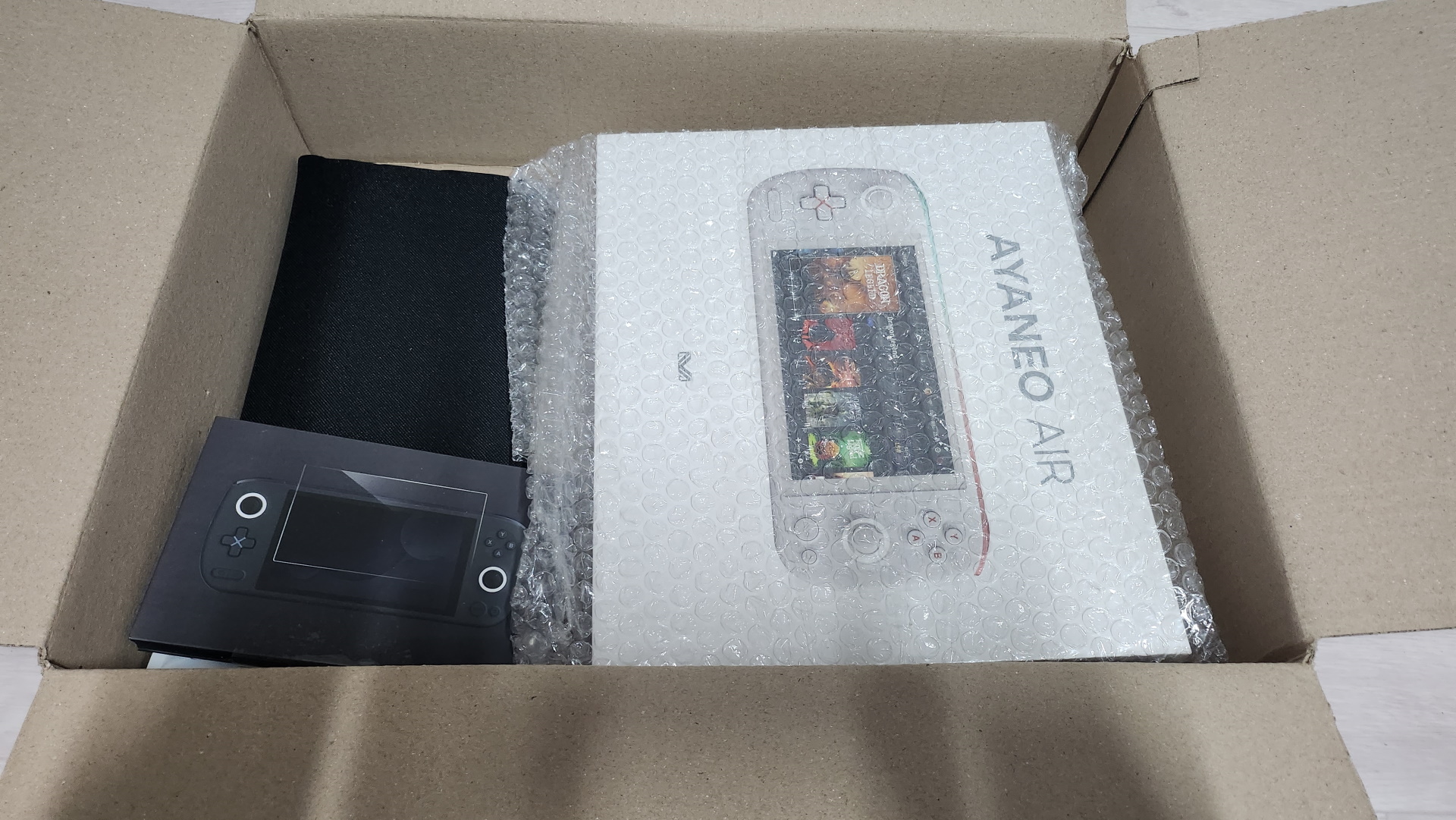 하얀색 커버를 걷어내면 AYANEO AIR 본체가 모습을 드러냅니다.