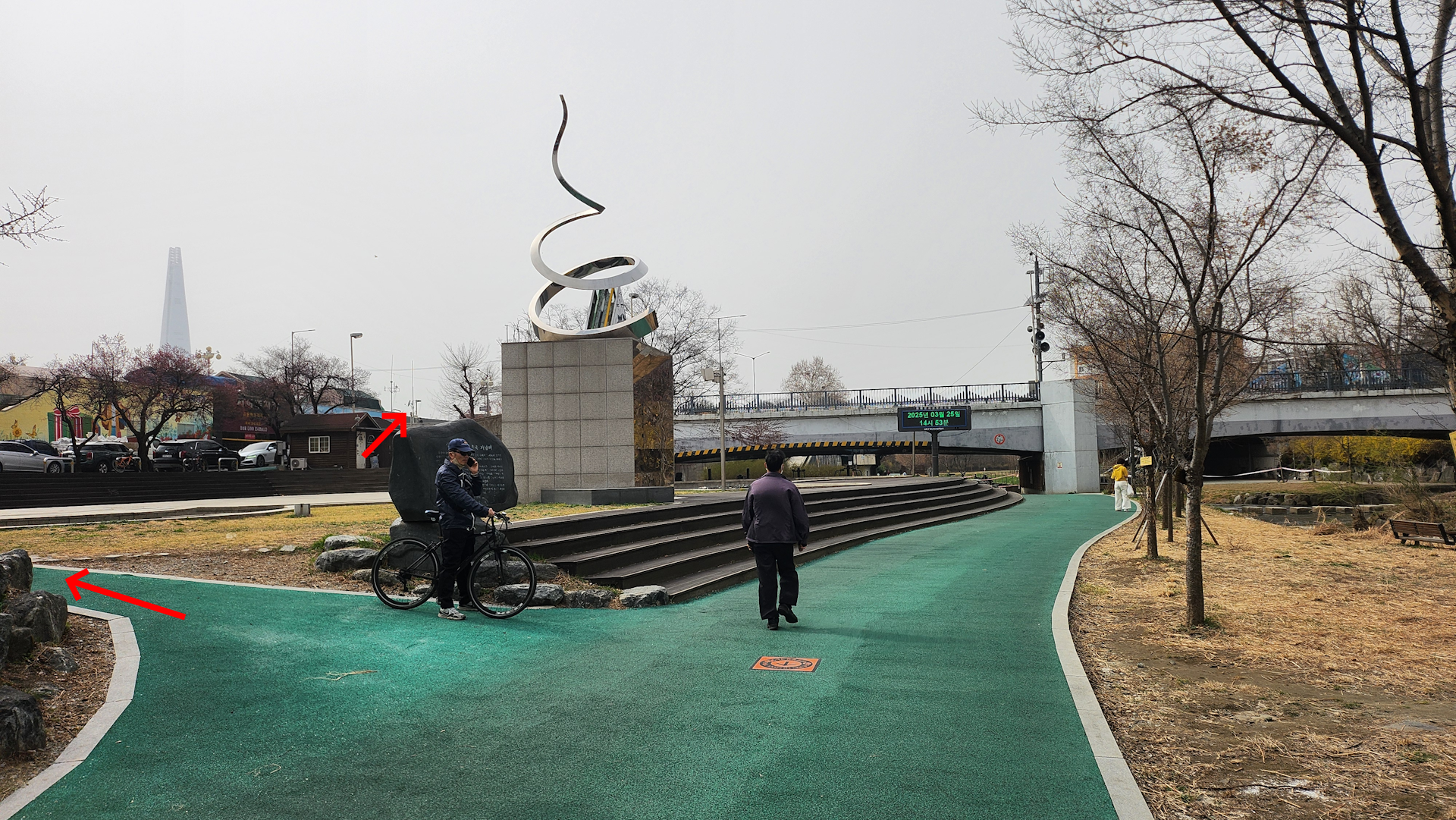 개천길을 가다 보면 광장과 분기점이 보이는데 왼쪽으로 빠져서 위로 올라갑니다.