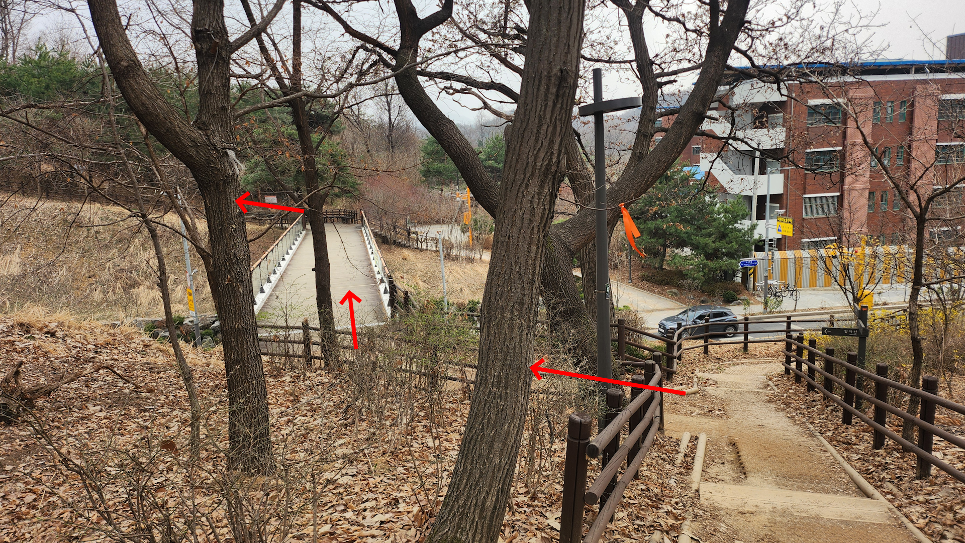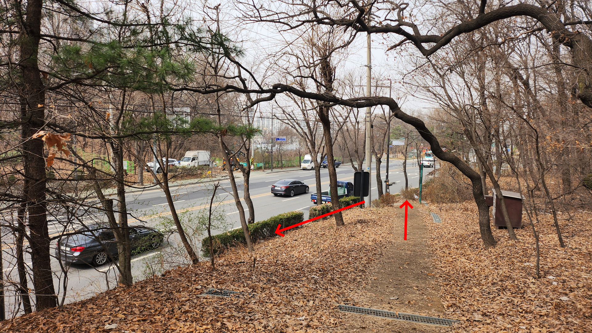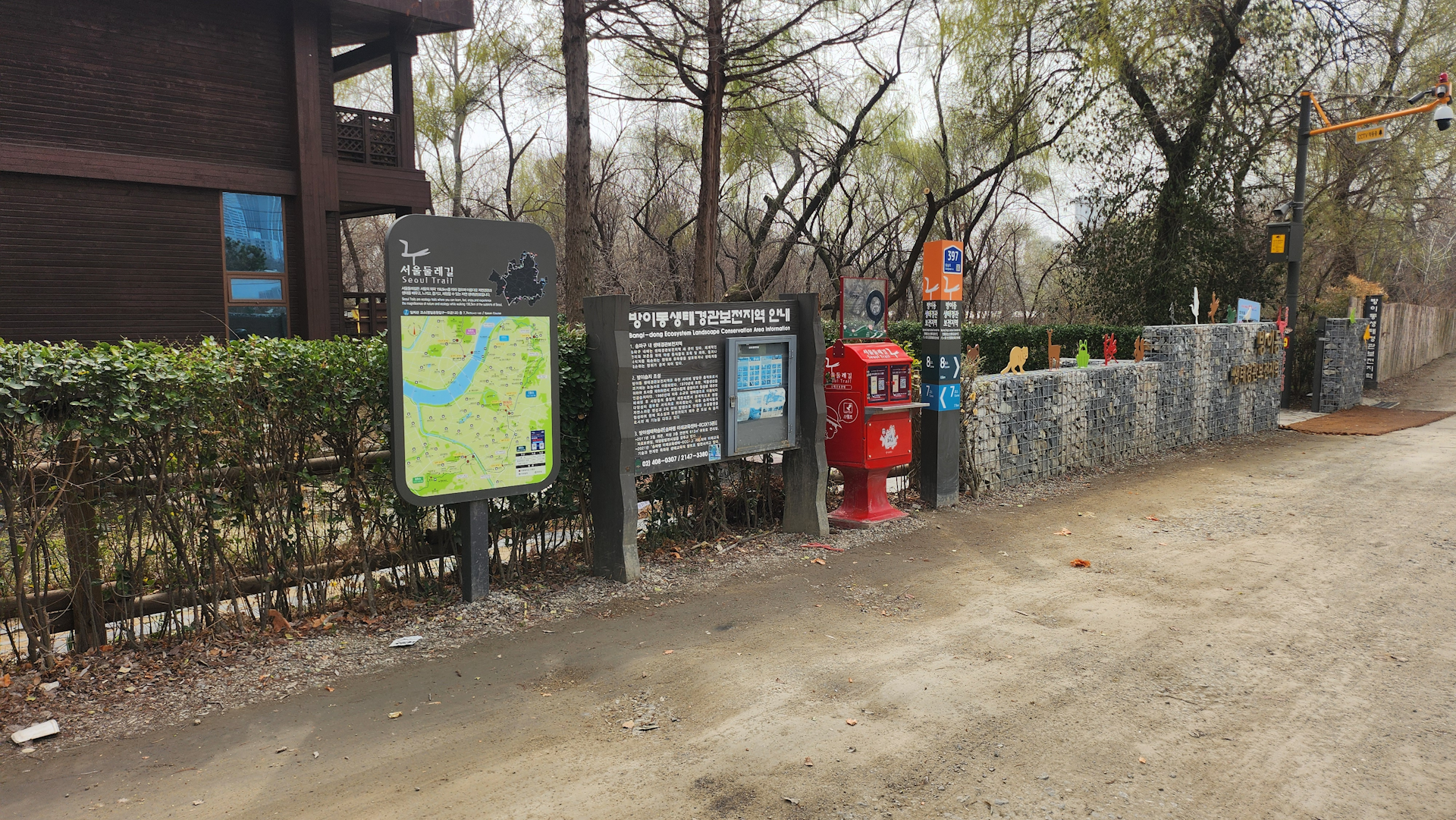 나중에 같은 길로 합류는 하지만 정규 코스보다 1km정도 더 걸어야 되므로 서울둘레길 홈페이지 지도나 지도책에 있는 경로를 보고 따라가주세요.