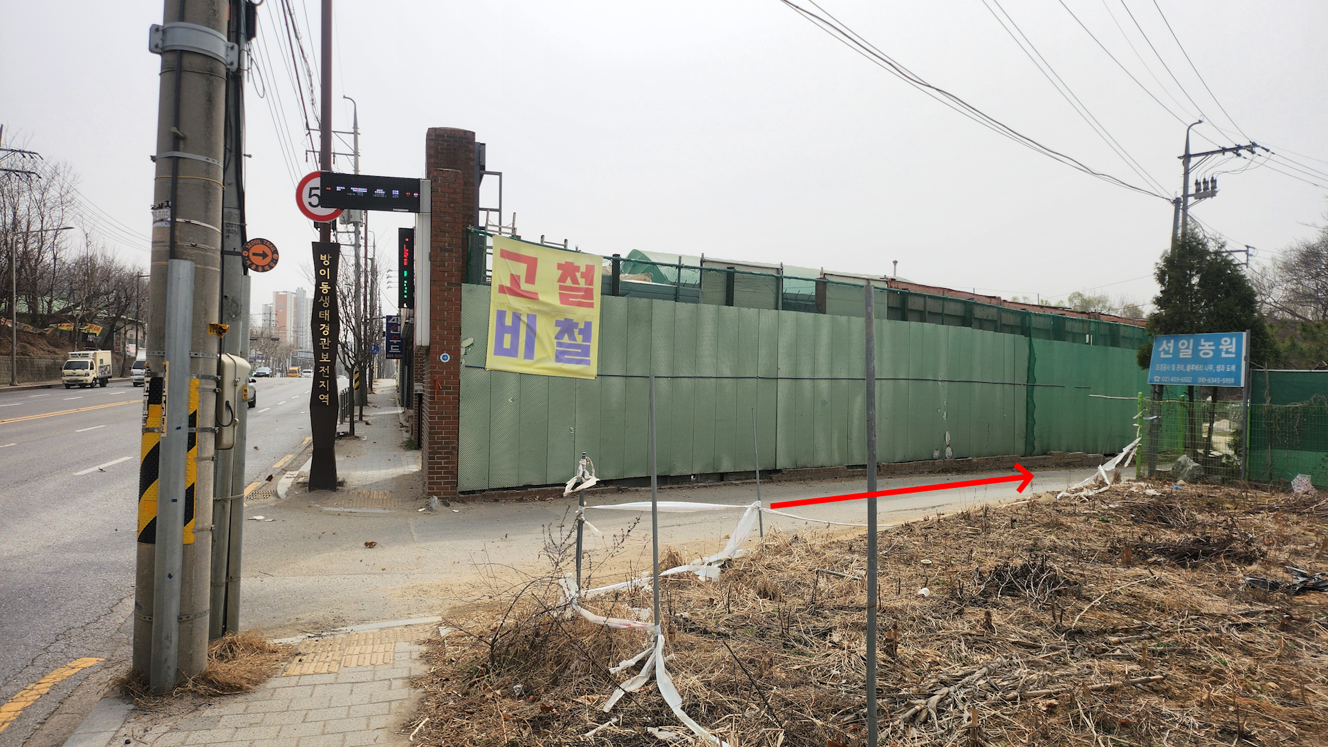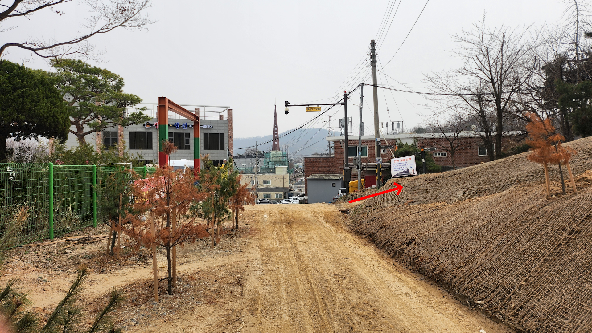 참고로 네이버 지도에서는 사진에서 주유소가 보이는 왼쪽 방향으로 가는걸로 되어있는데 그쪽으로 가면 한참 빙 둘러서 우회하는 경로로 가게 됩니다.
