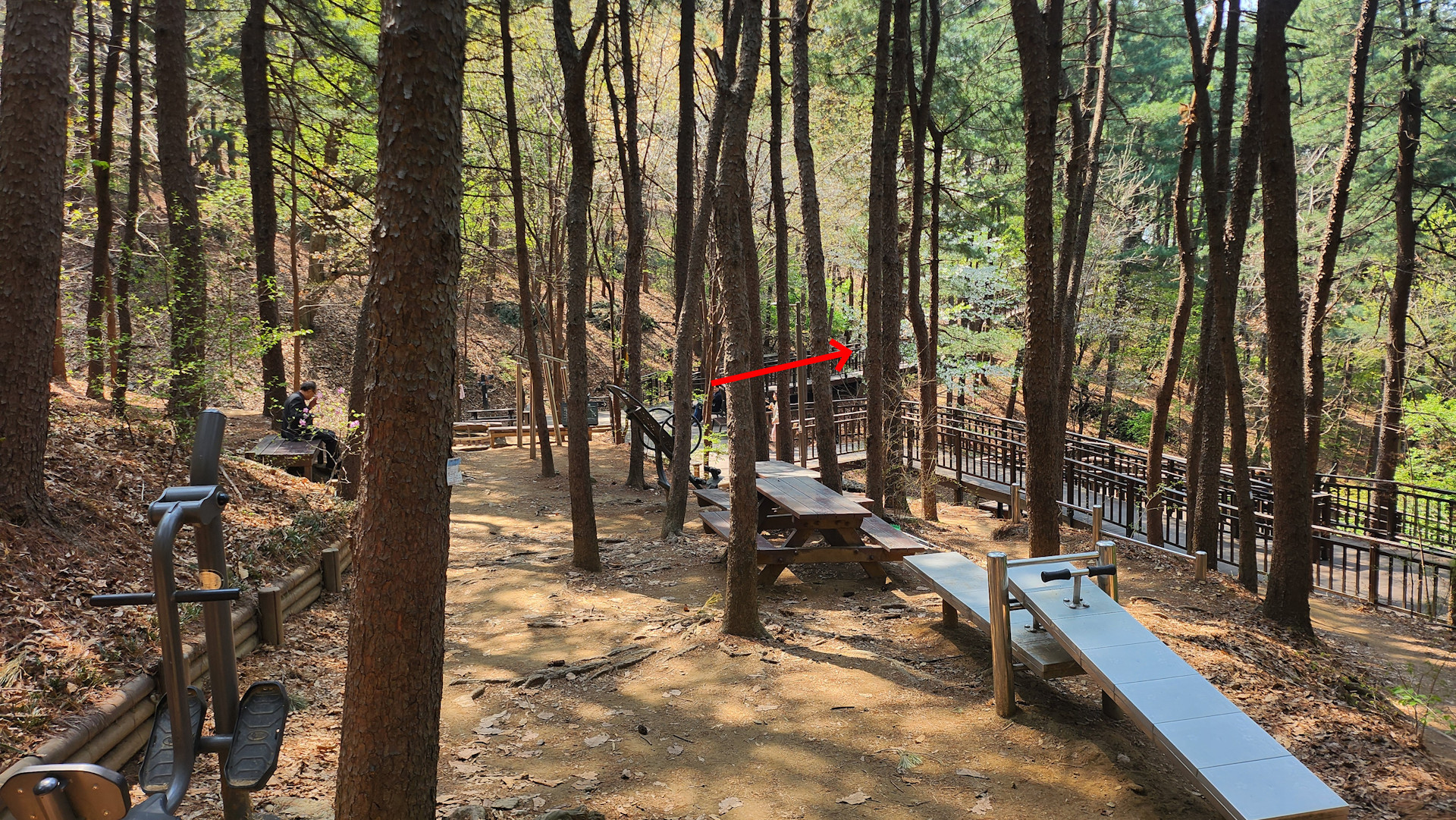내려가다가 운동시설 있는곳이 보이면 안쪽에 있는 데크길로 들어갑니다.