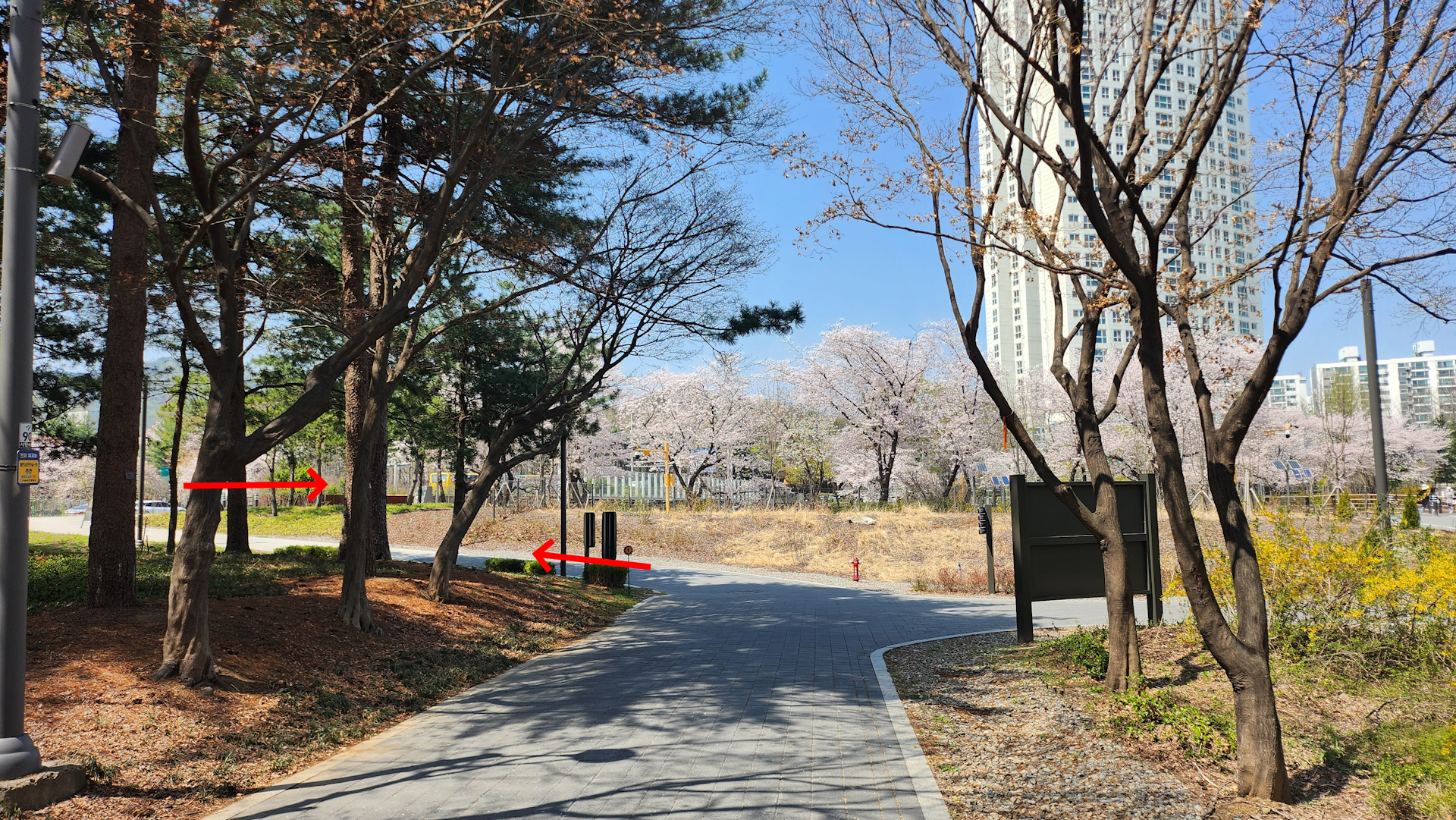 이어서 교차로를 다시 만나면 오른쪽에 보이는 공원 입구로 들어갑니다.