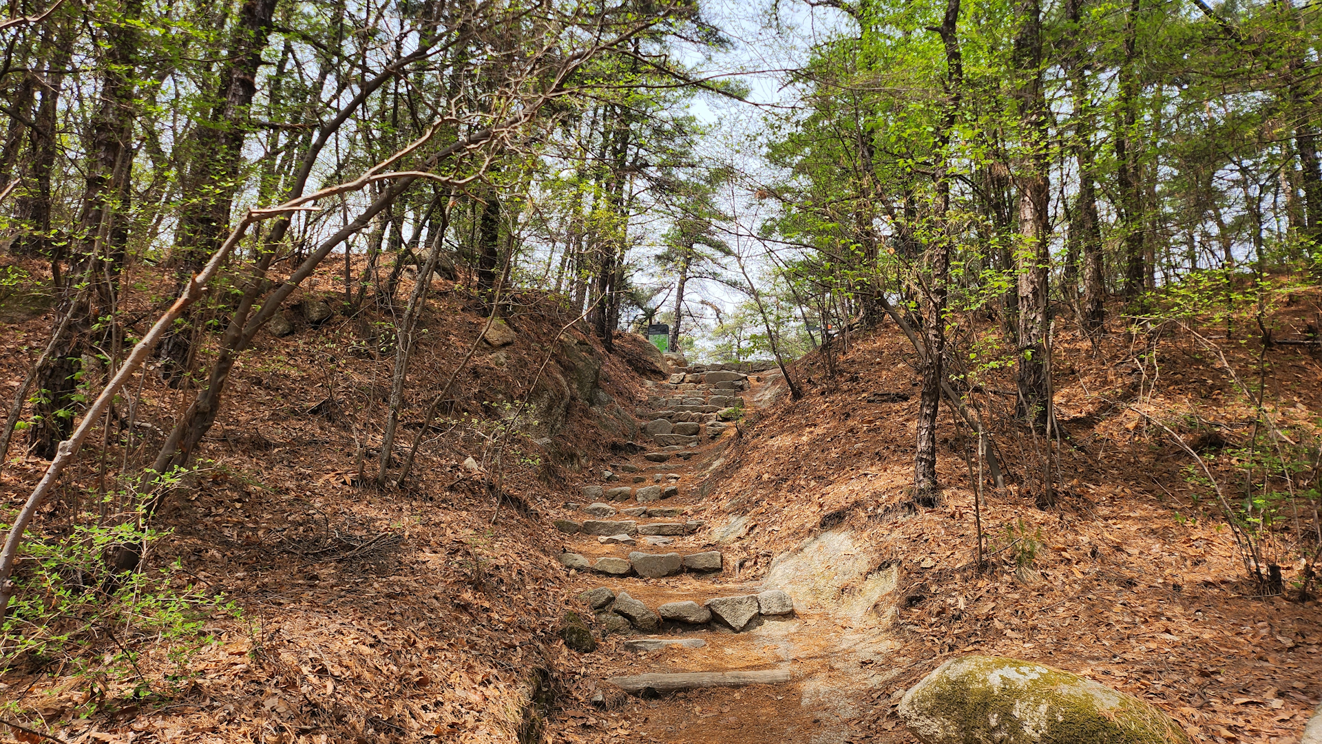 돌계단 저편에 안내지도 표지판이 보이면 드디어 오르막이 끝납니다.
