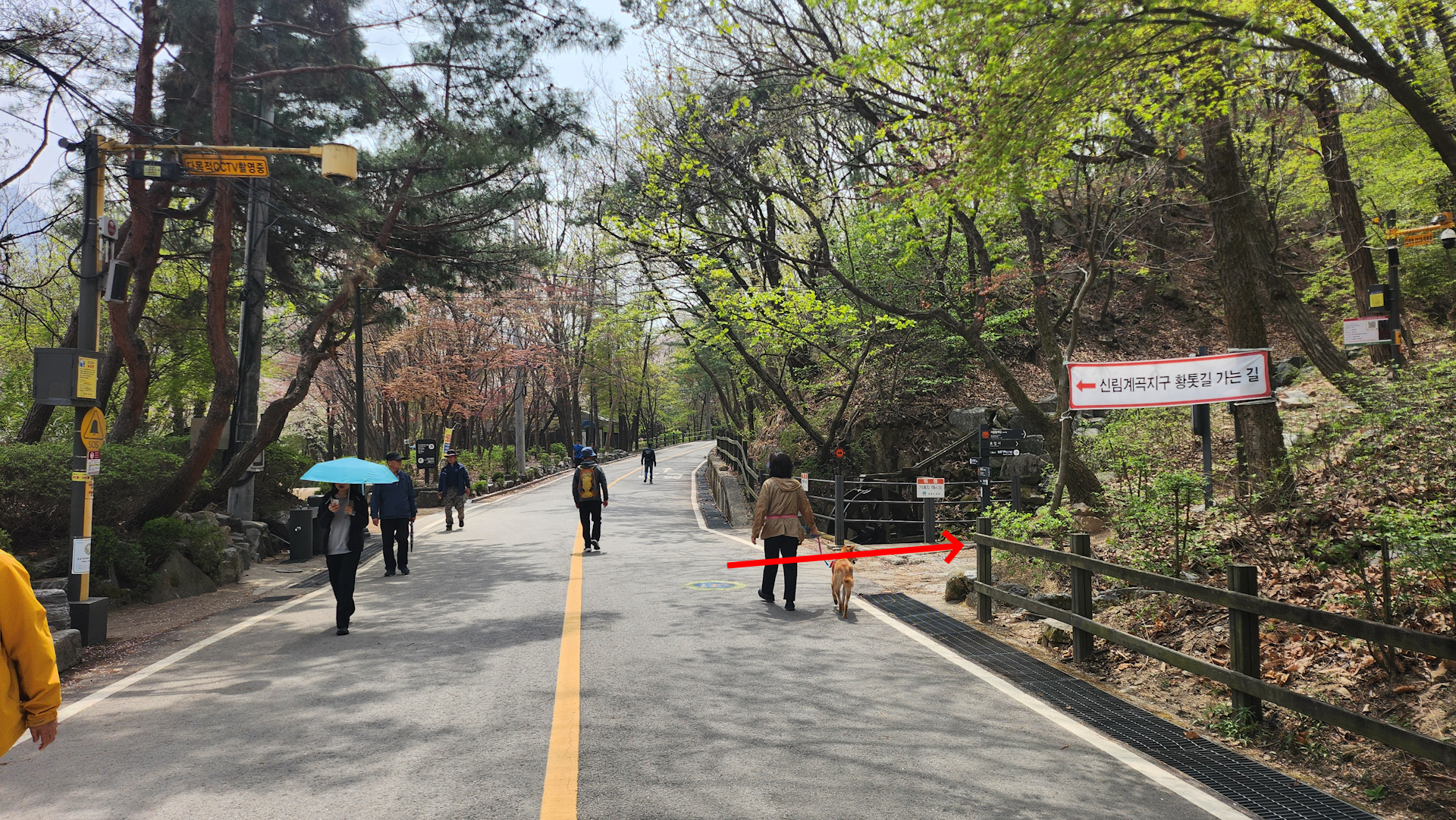 사찰 정문의 도로로 내려가다가 왼쪽의 산길로 들어갑니다.