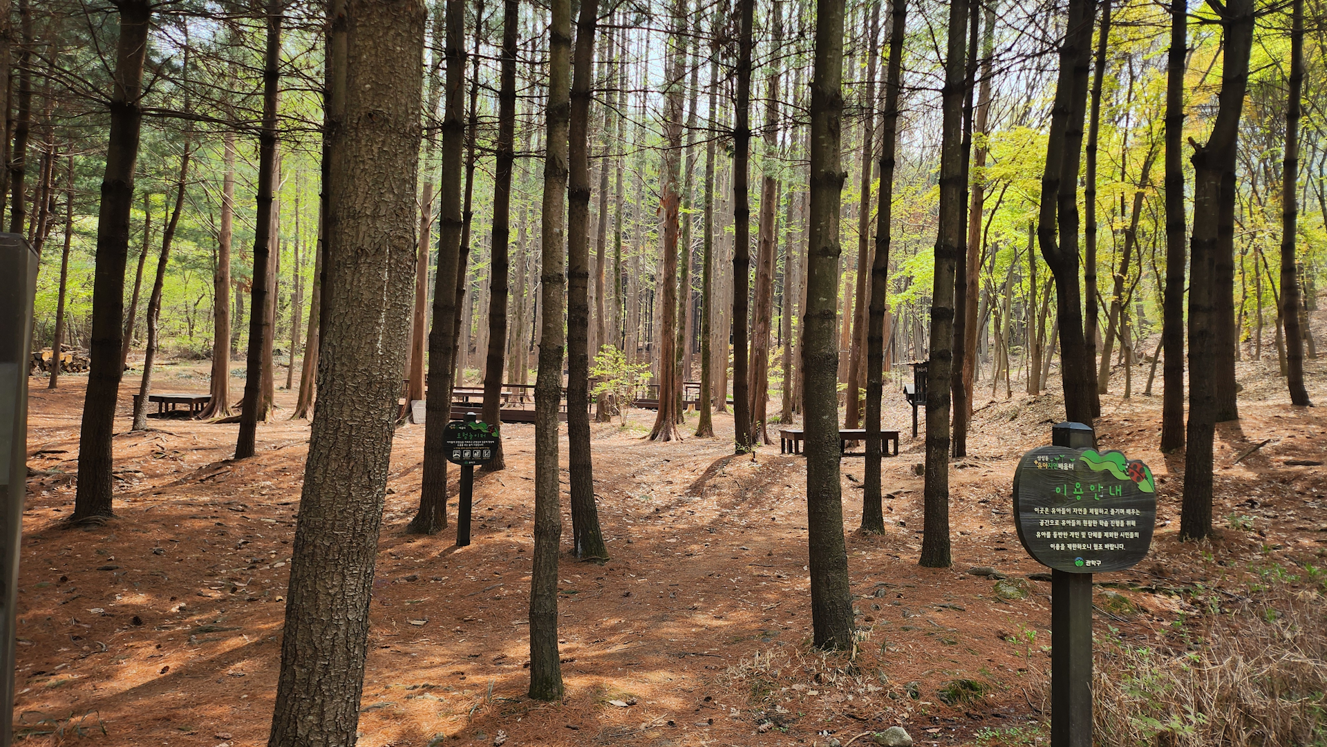 어렸을때 소풍갔던 곳이 이런 느낌의 나무들만 빽빽하게 있었던 산으로 갔던것이 기억나네요