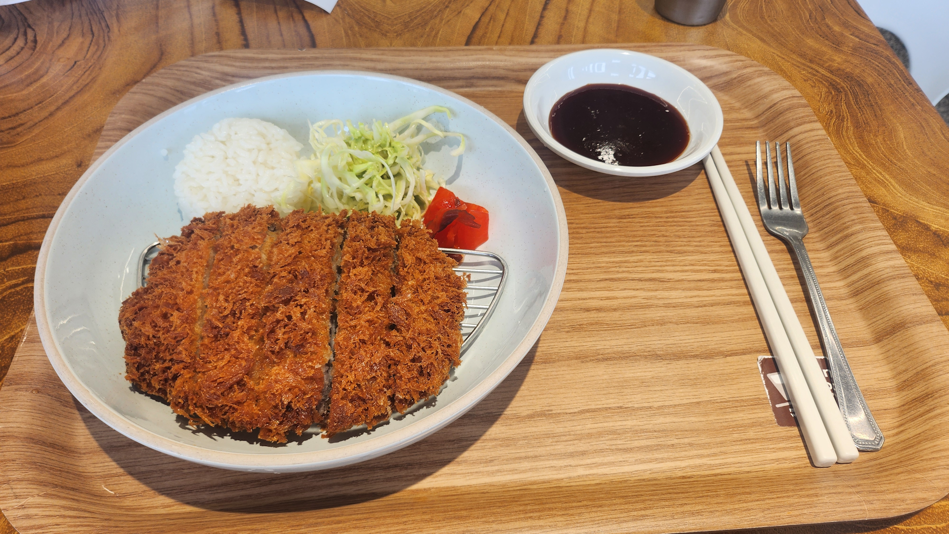 출발 전에 관악산역 근처 분식집에서 돈가스를 먹었습니다.