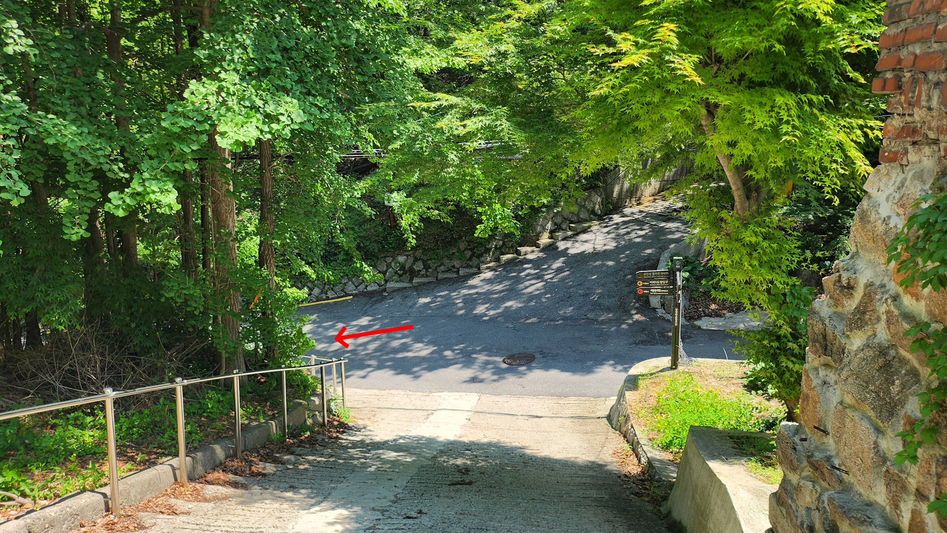 표지판만 보면 오른쪽의 계단으로 내려가야 할 것 같지만 정면으로 올라가야 합니다.