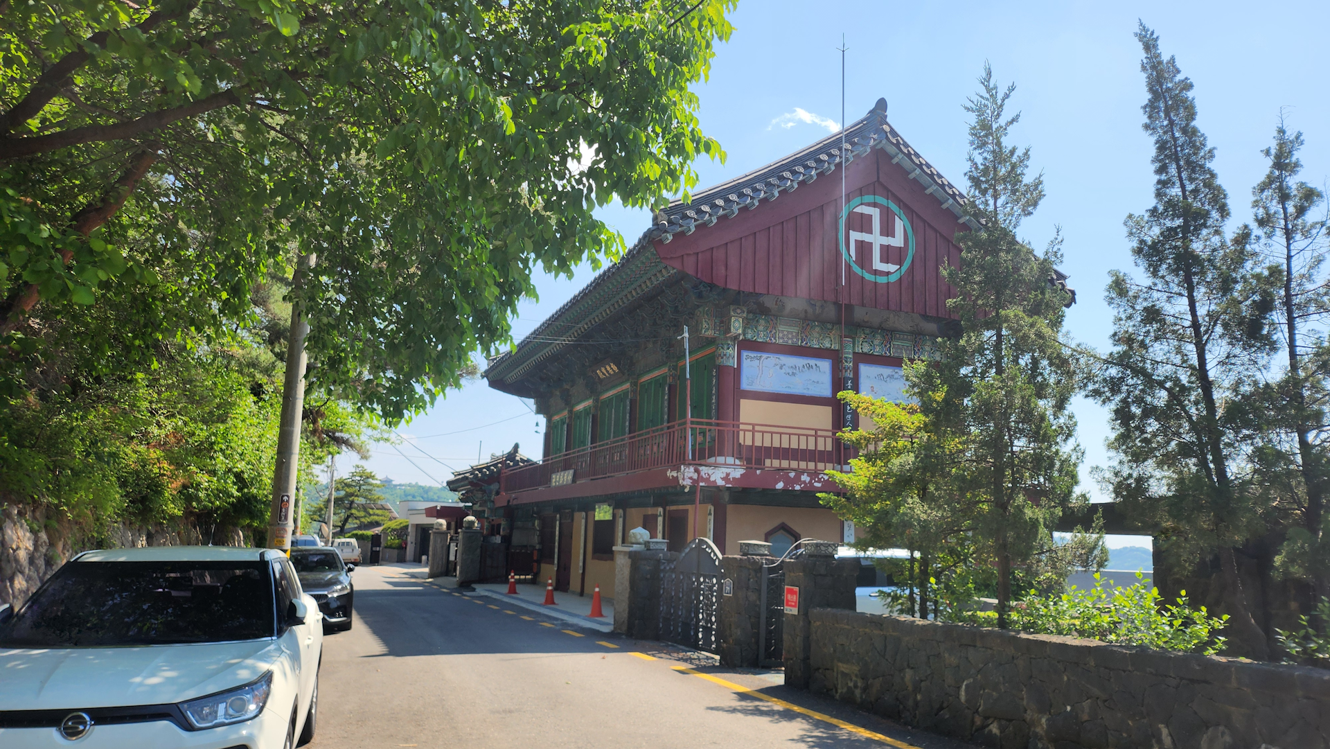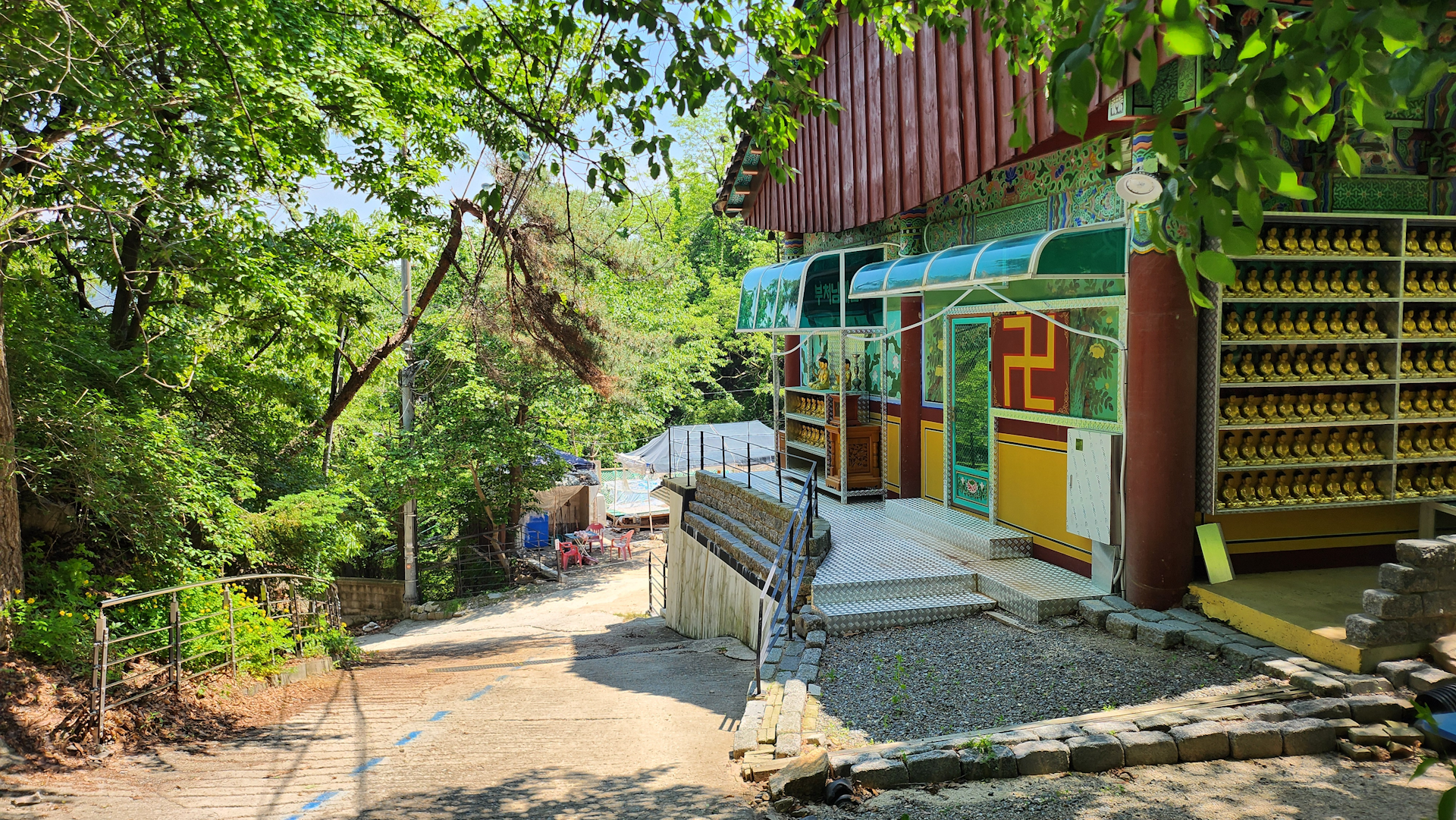 내려오는 길에 사찰 건물을 스쳐 지나갑니다