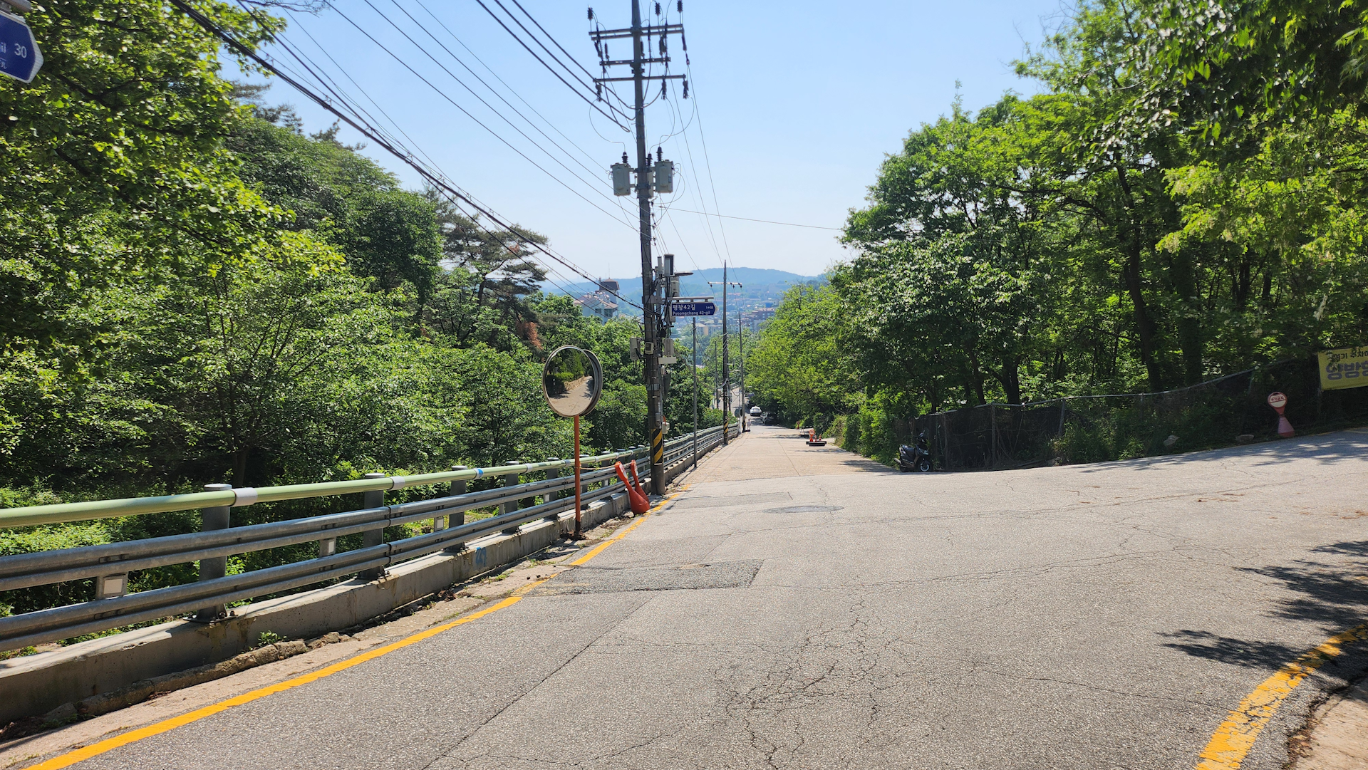 하지만 그 짧은 산길의 오르막이 길고 경사가 높아서 생각보다 힘들고 주택가 구간도 초반 오르막이 긴 편이라 만만치 않습니다.