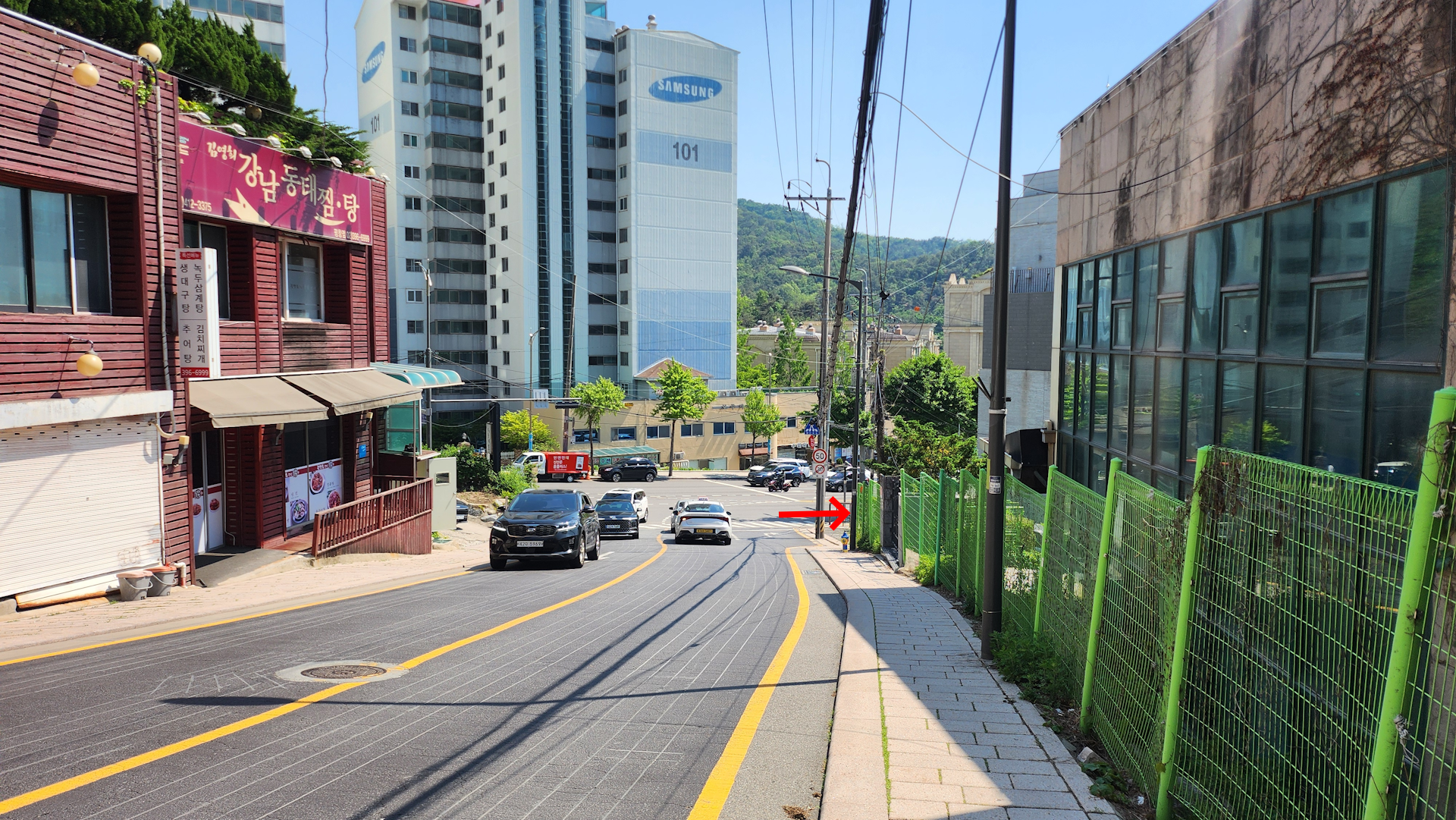 바로 앞에 보이는 계단 오르막으로 올라갑니다.