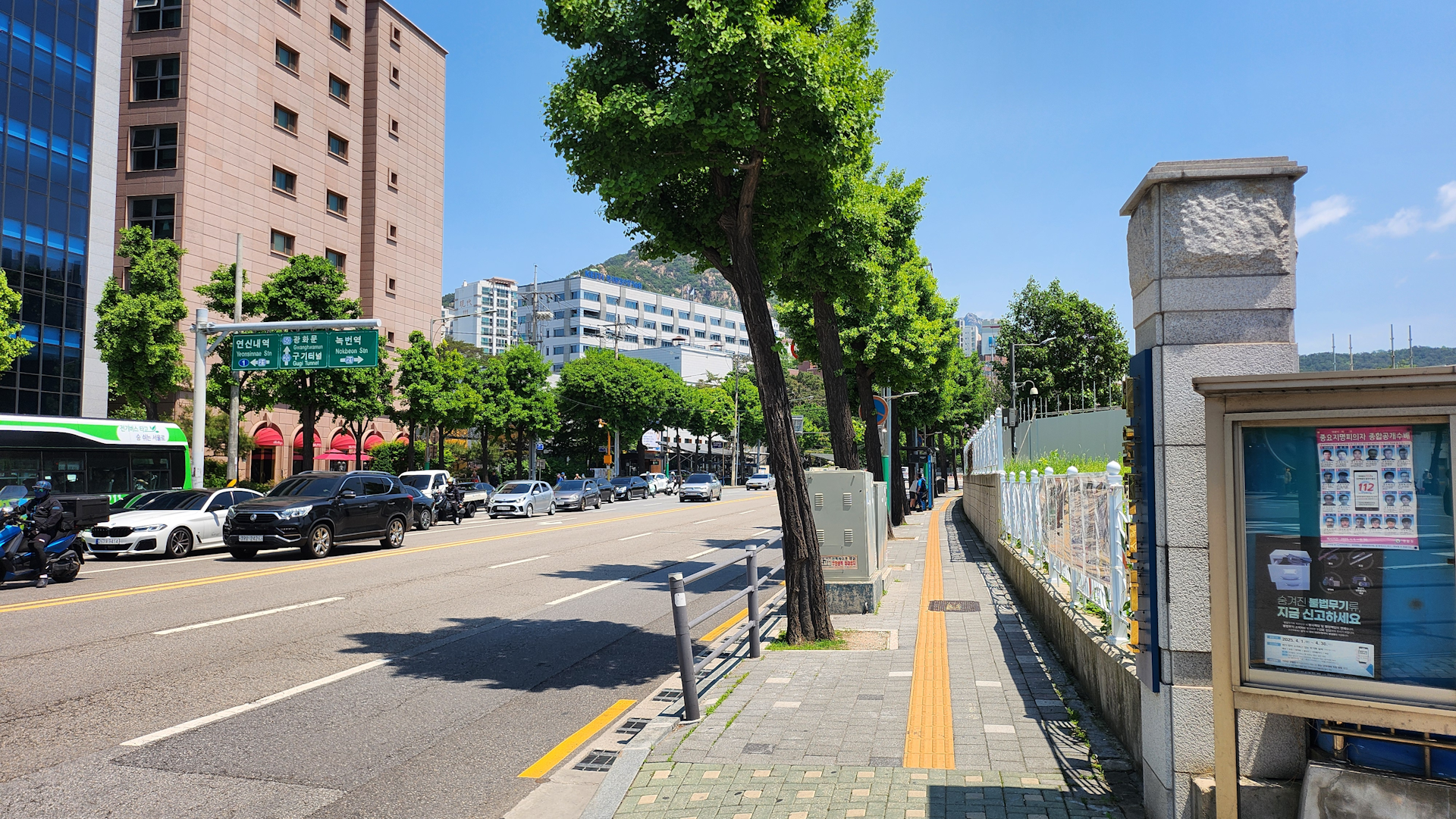 저 마트 앞 버스정류장에서 버스를 타면 3호선 경복궁역까지 갈 수 있습니다.