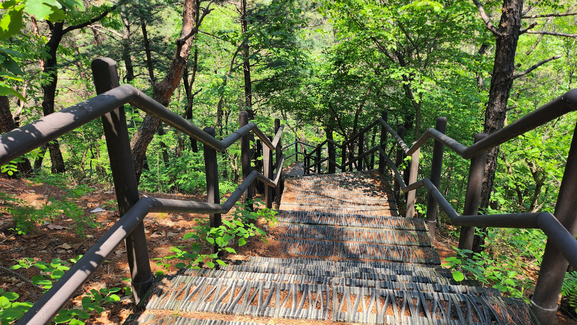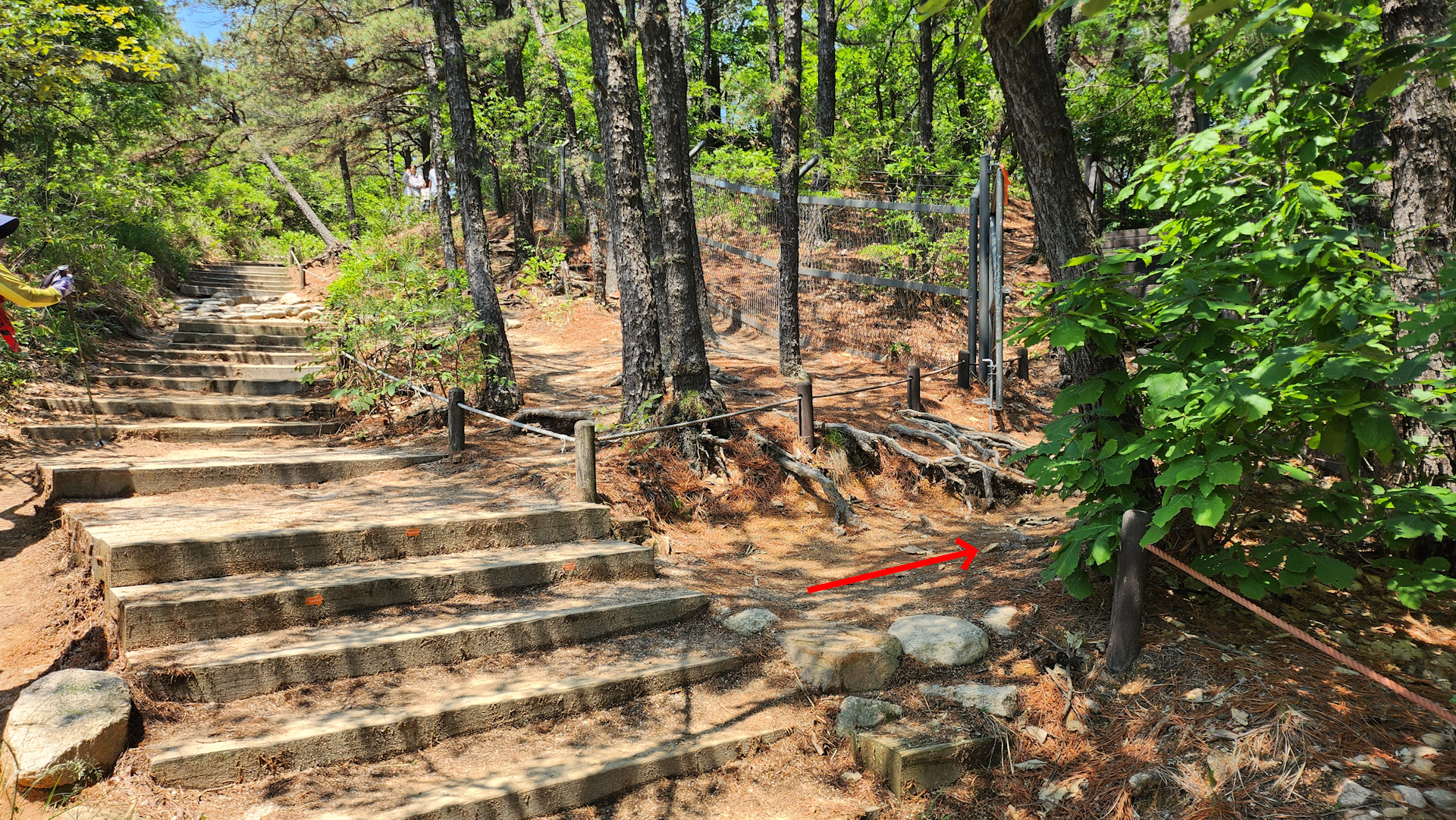 여기까지 왔으면 오른쪽에 보이는 계단으로 내려가고 경사가 급한 내리막 구간이 나옵니다.
