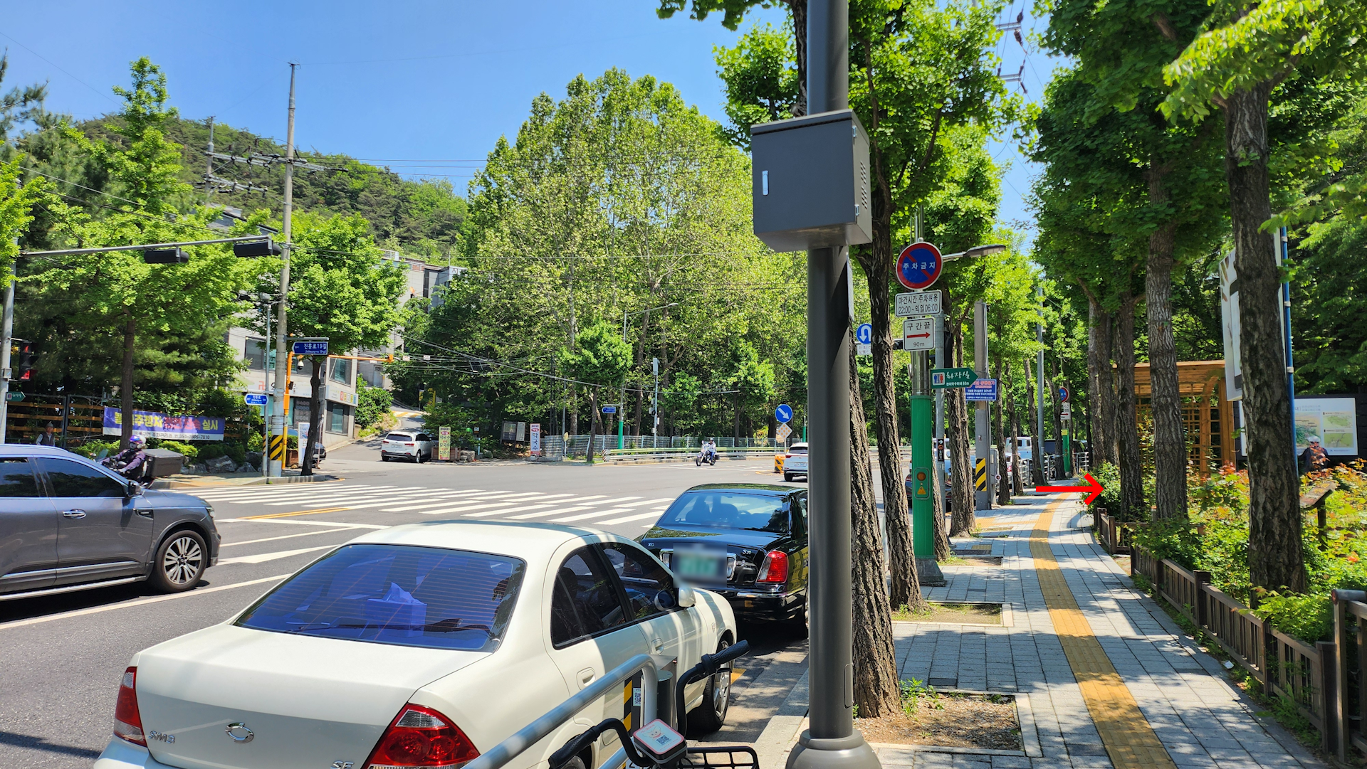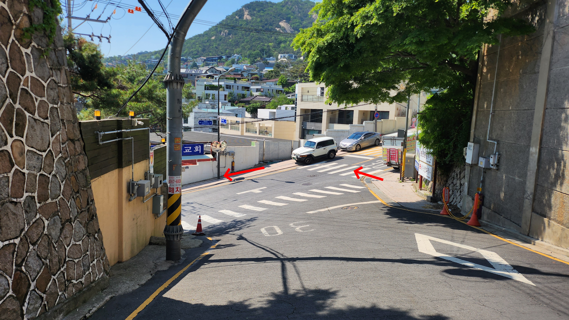 큰 길을 따라 계속 올라갑니다.