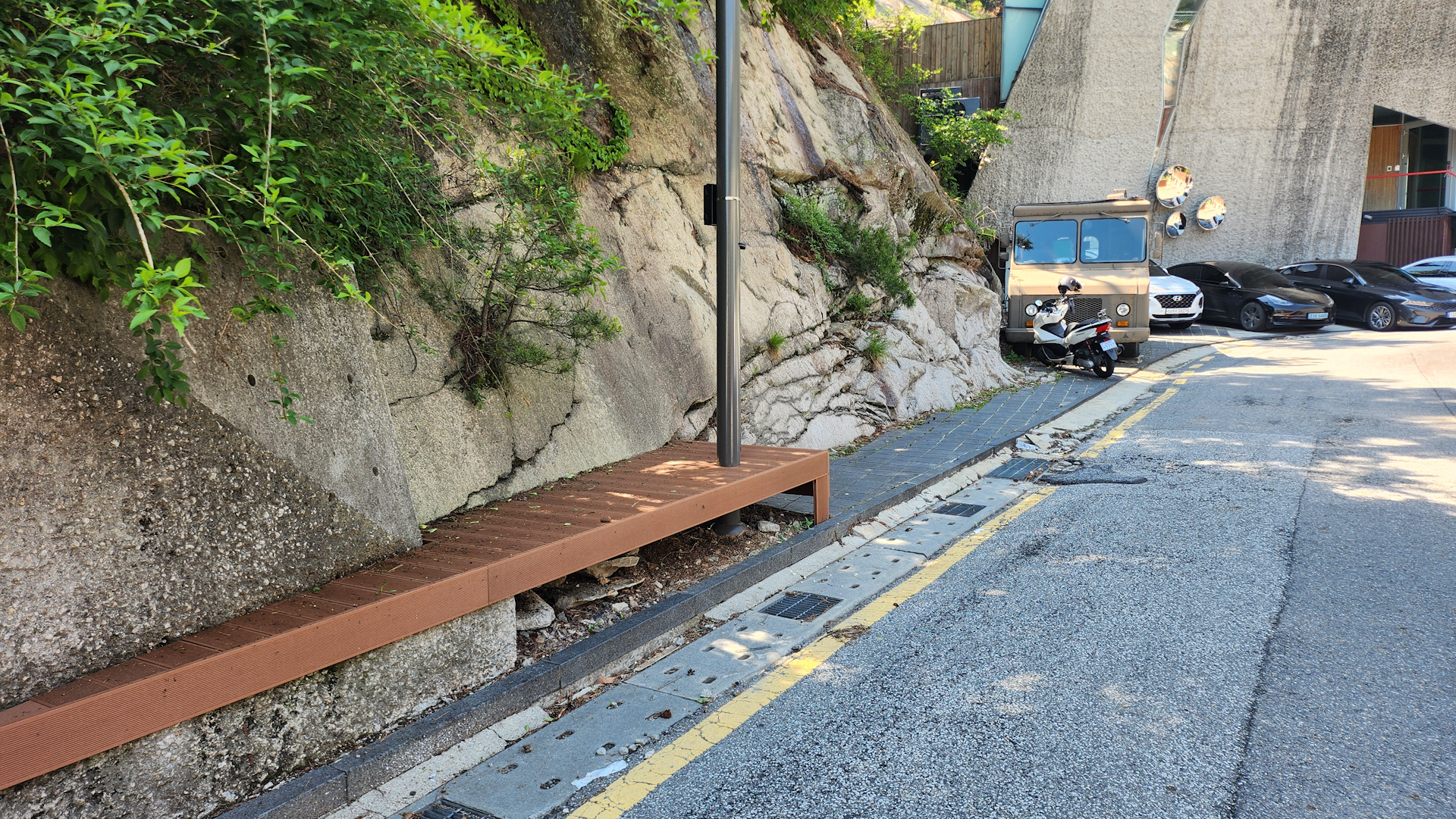 여기 구간은 주택가인 관계로 지금까지 온 산길처럼 공공 휴식시설이 매우 적기 때문에 여기서 미리 한번 쉬고 가는것을 권장합니다.