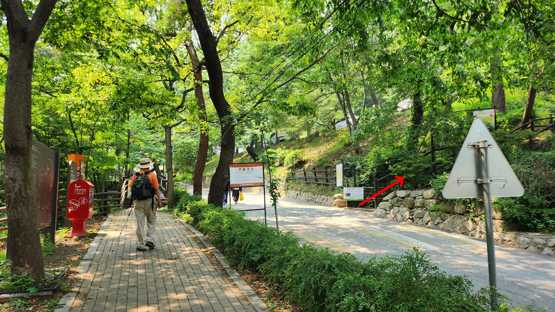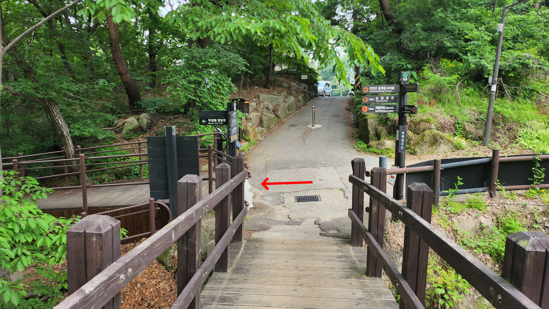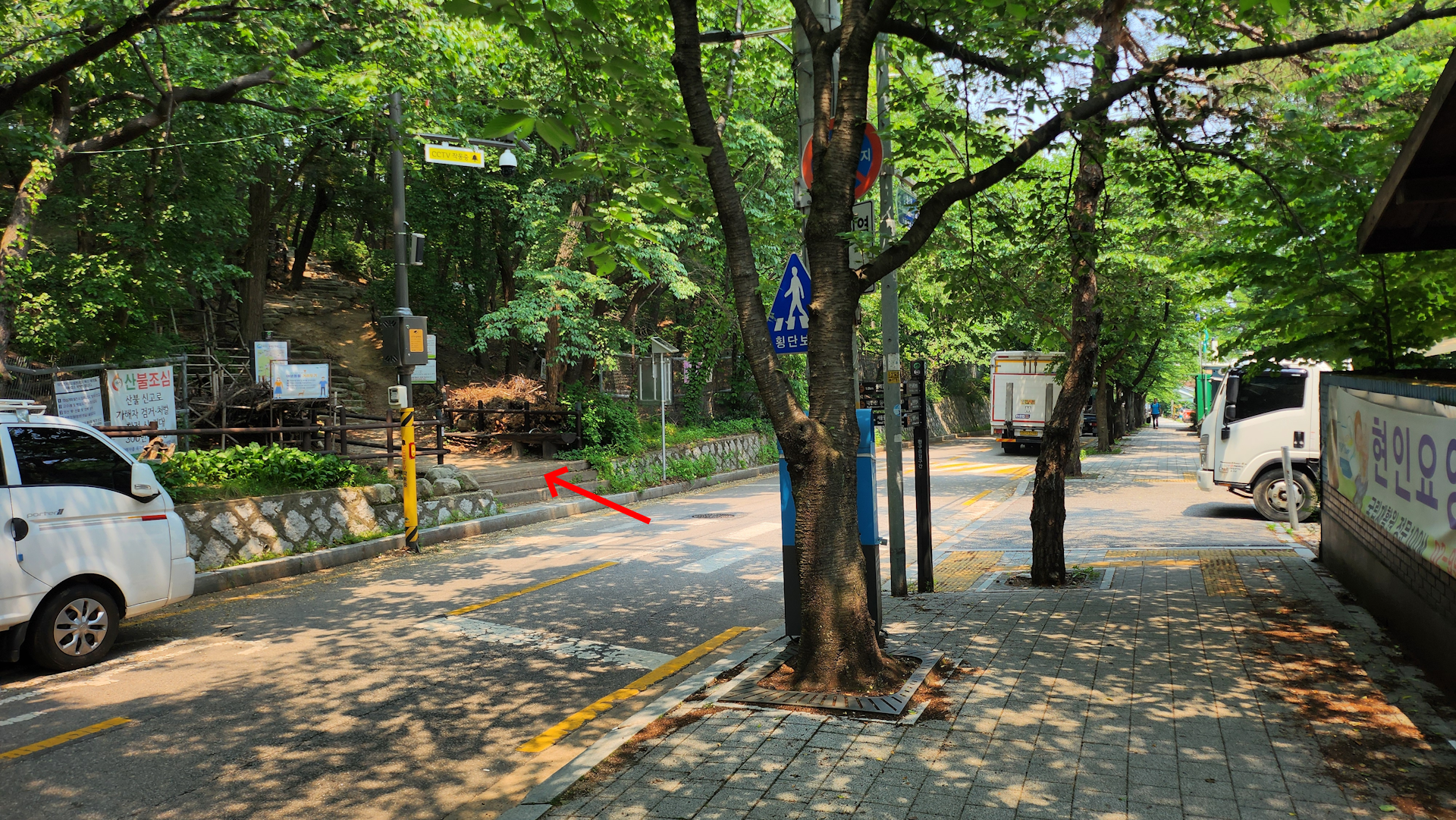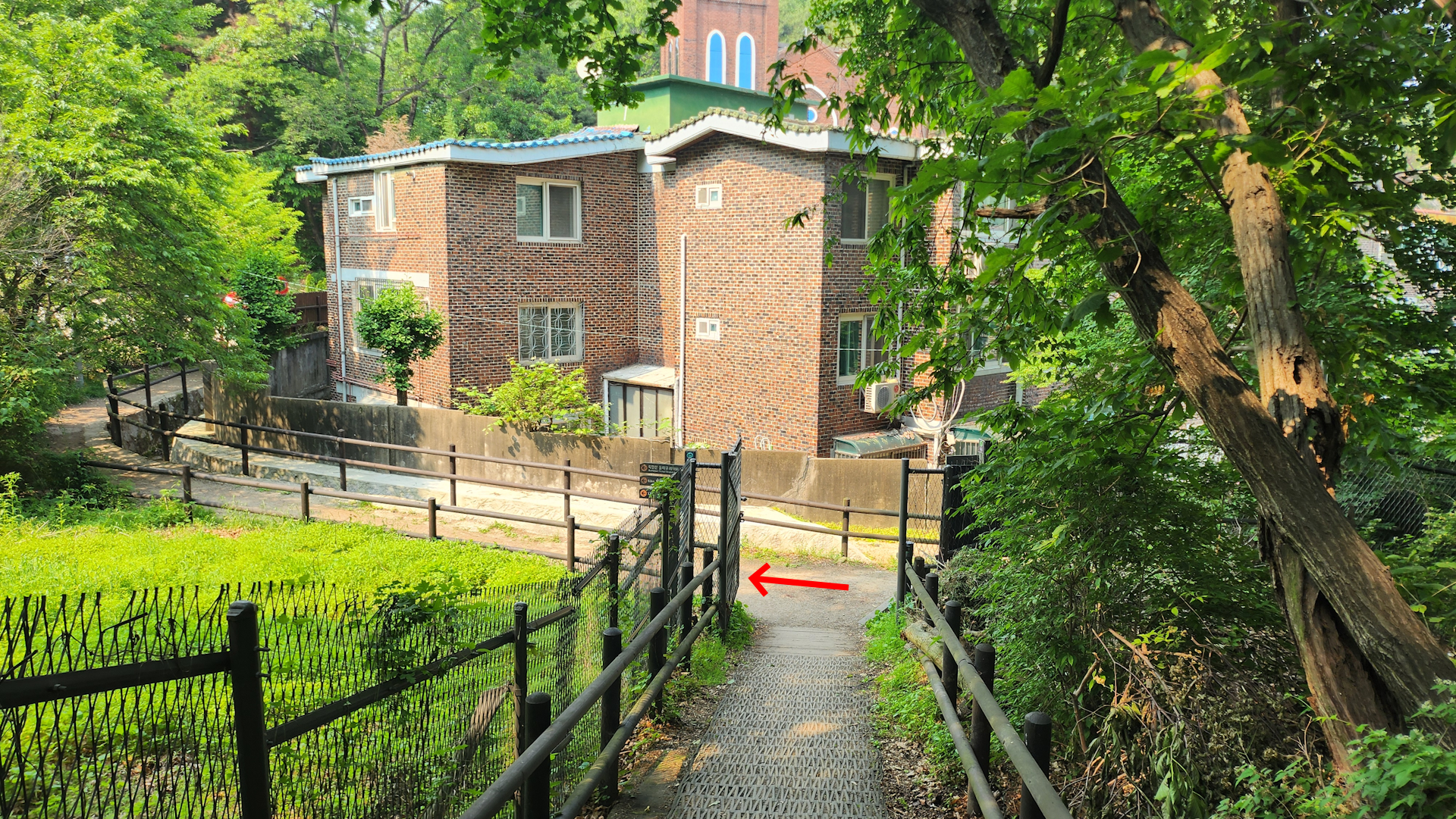 공원 밖으로 나온 후 정면의 길로 올라갑니다.