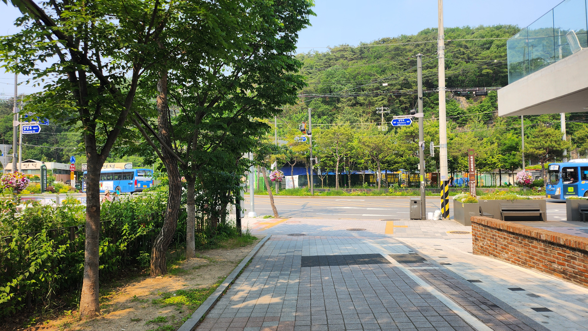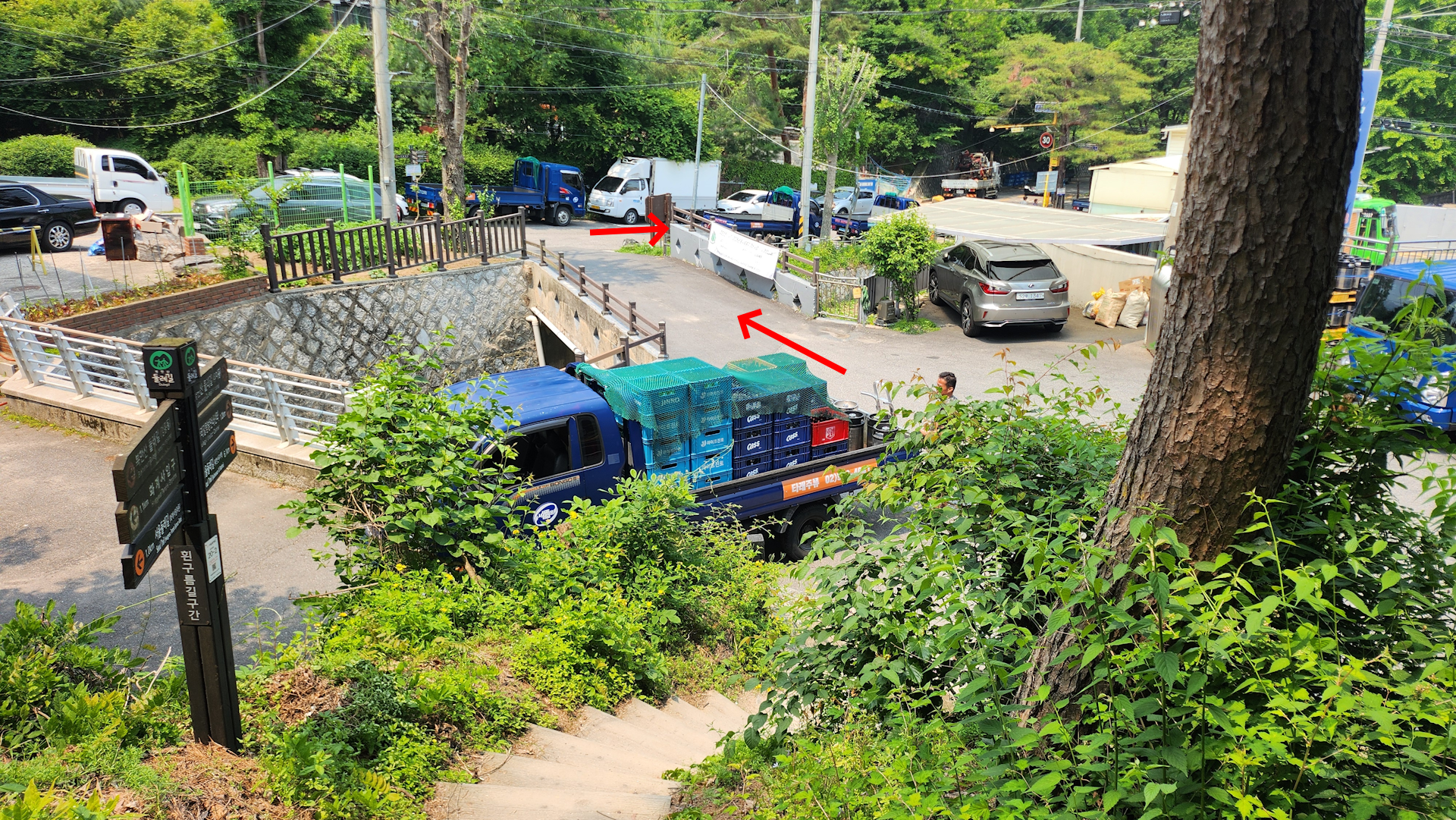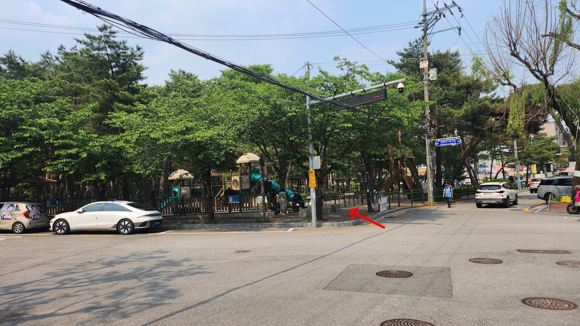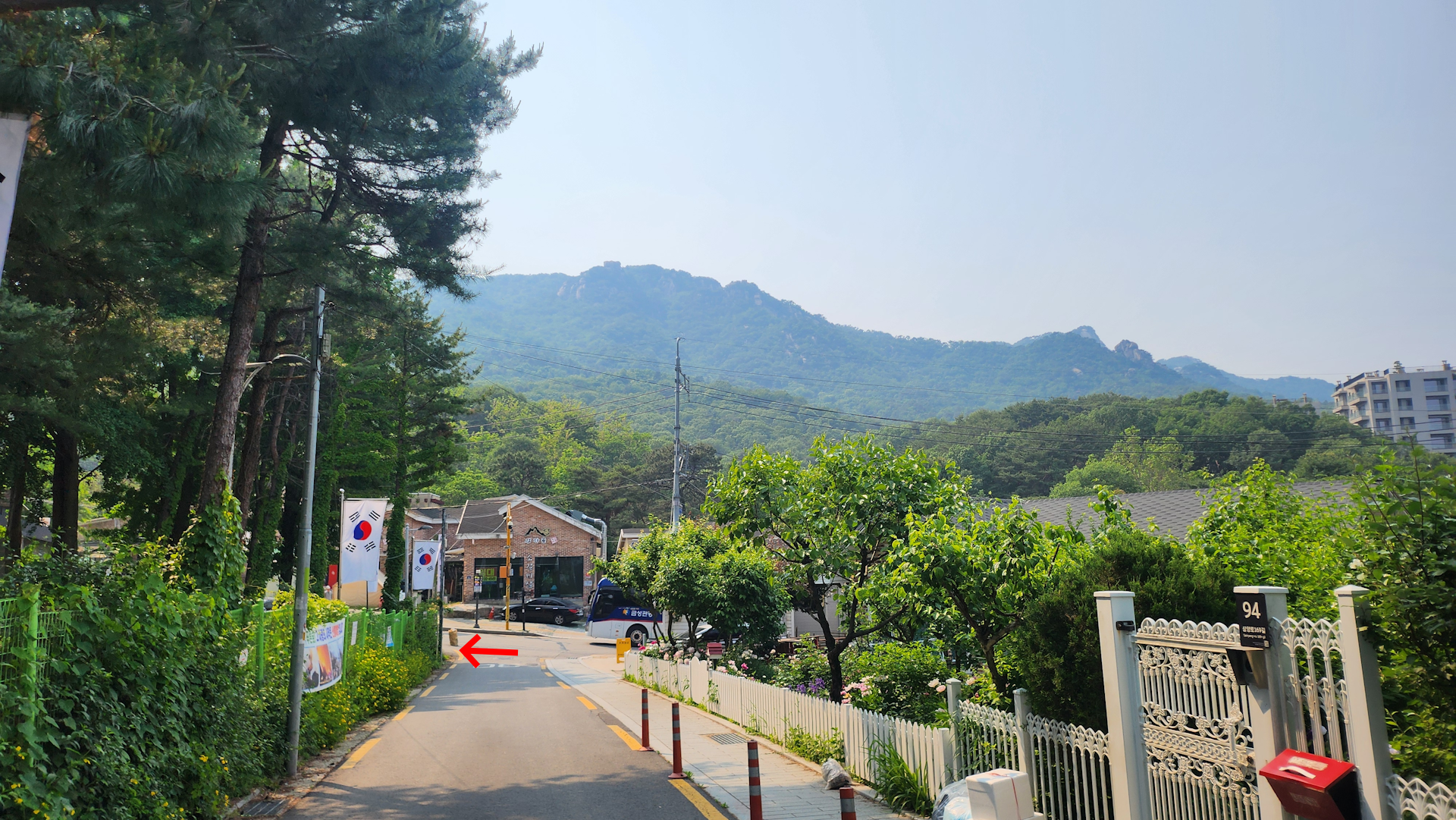 공원 밖으로 나온 후 정면의 길로 올라갑니다.