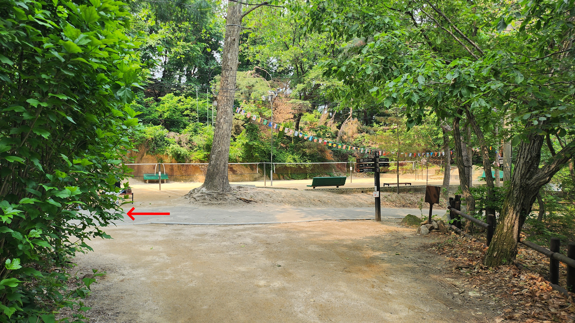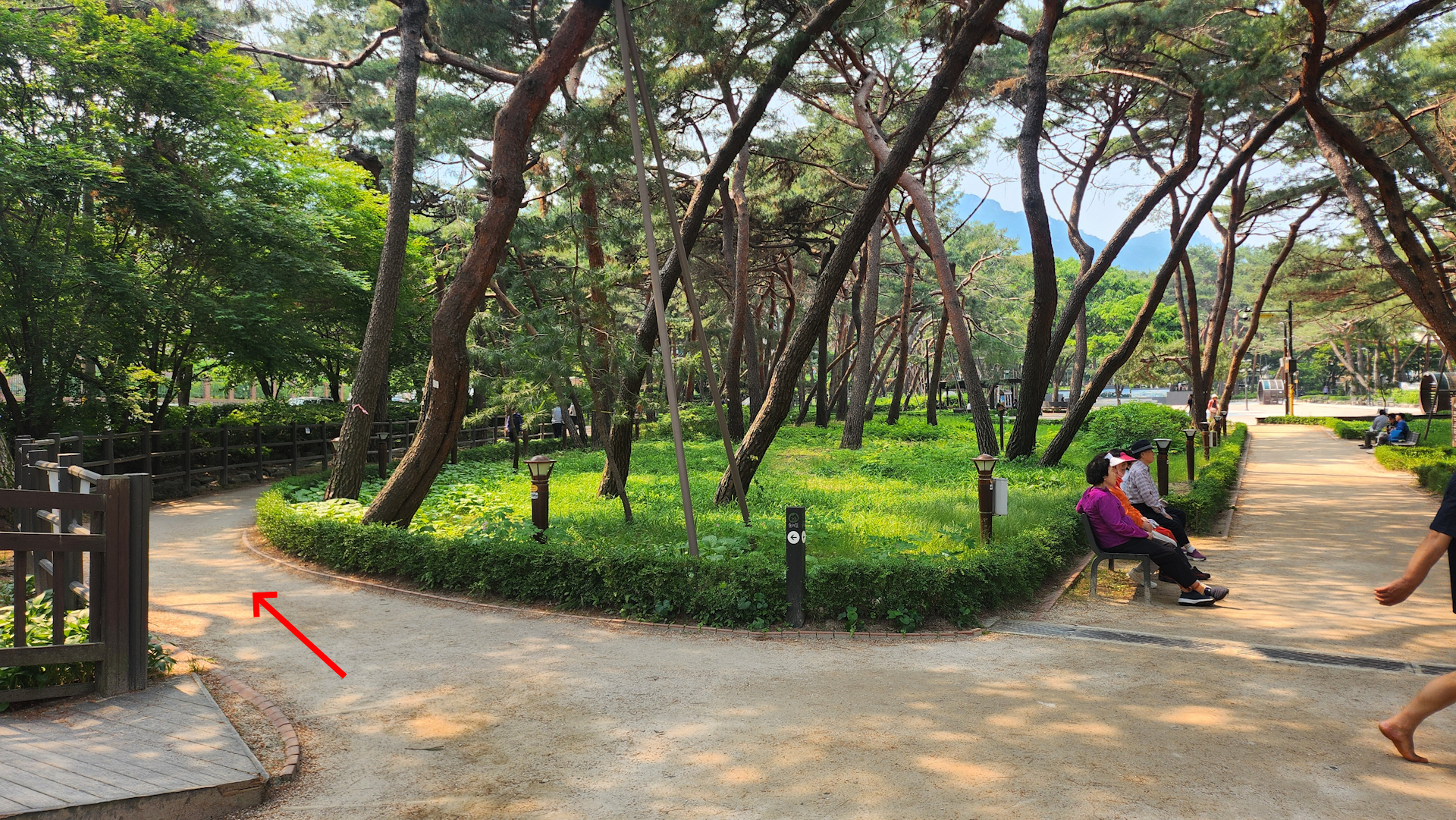 공원의 맨 왼쪽 길을 따라 가줍니다.