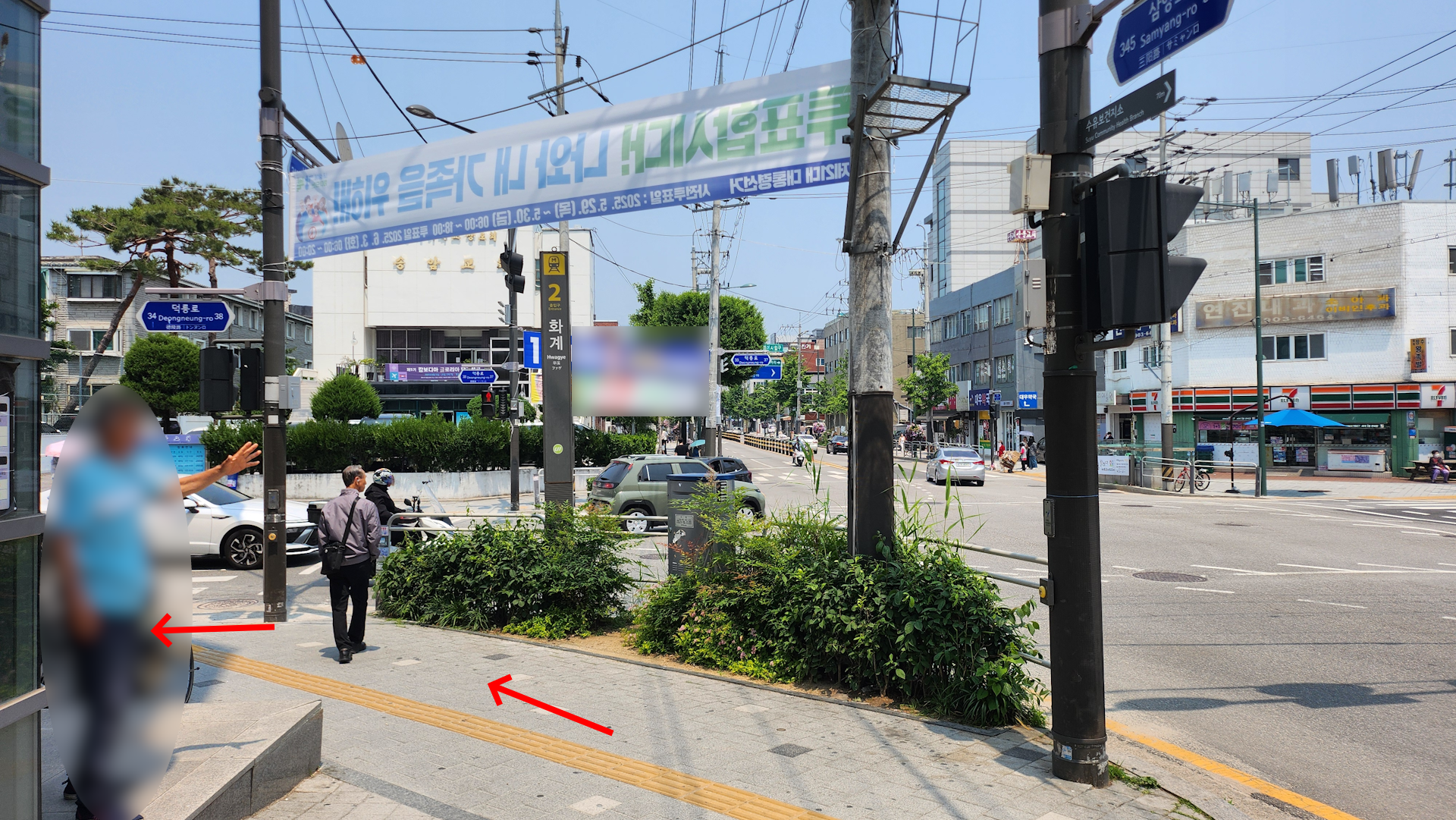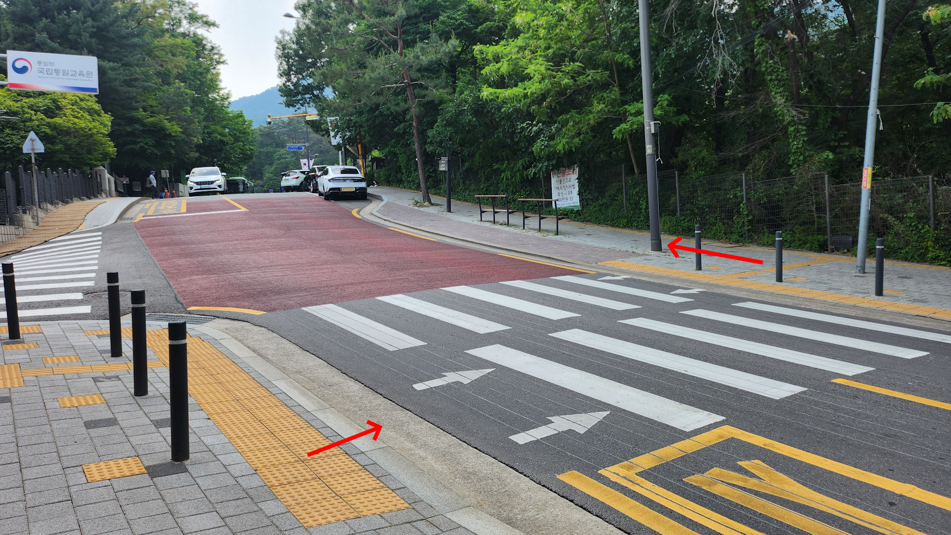 교차로가 나오면 왼쪽으로 방향을 튼 후 조금만 더 가면 건널목이 나오는데