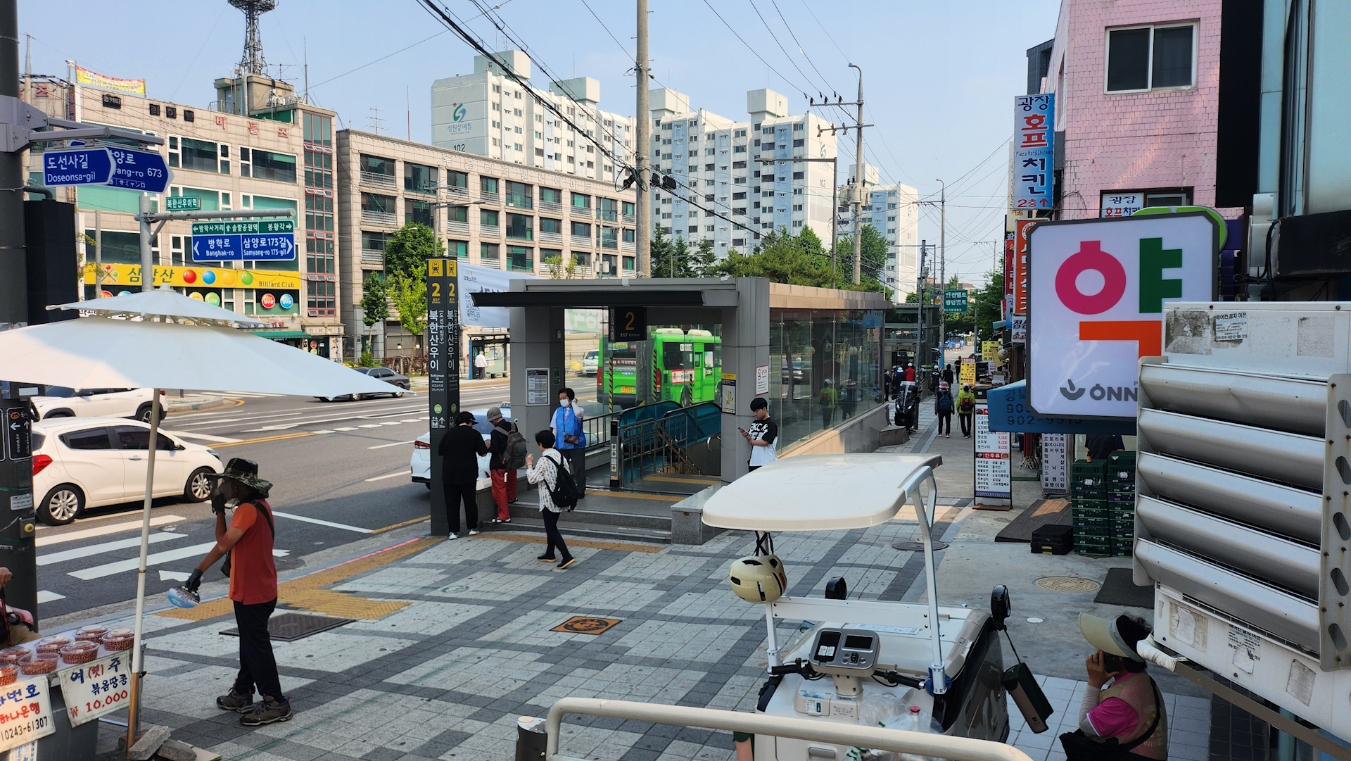 출구로 나와서 왼쪽 길로 들어가 700m 정도 직진합니다.