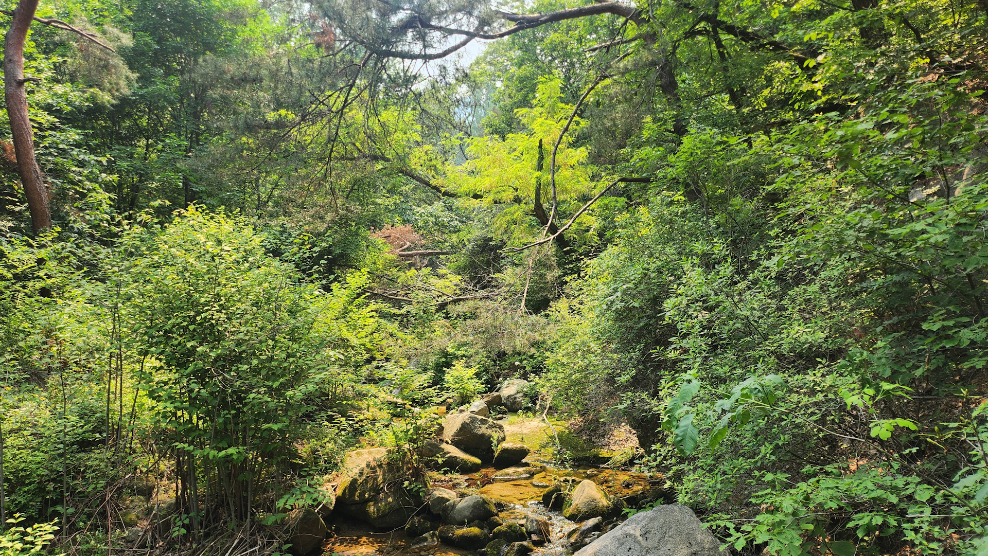 이번에 왔을 때는 나무들이 지나치게 울창해져서 냇물이 잘 안보일 정도가 되어 아쉬웠습니다.
