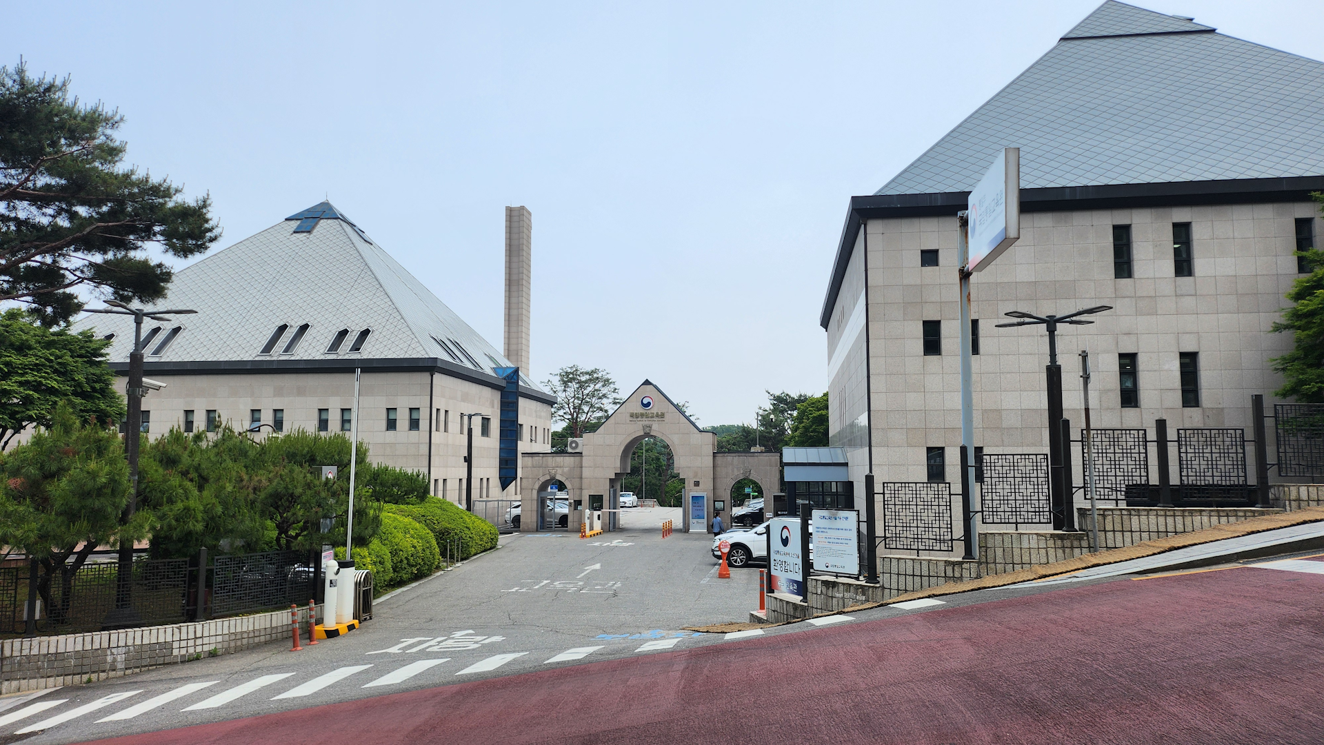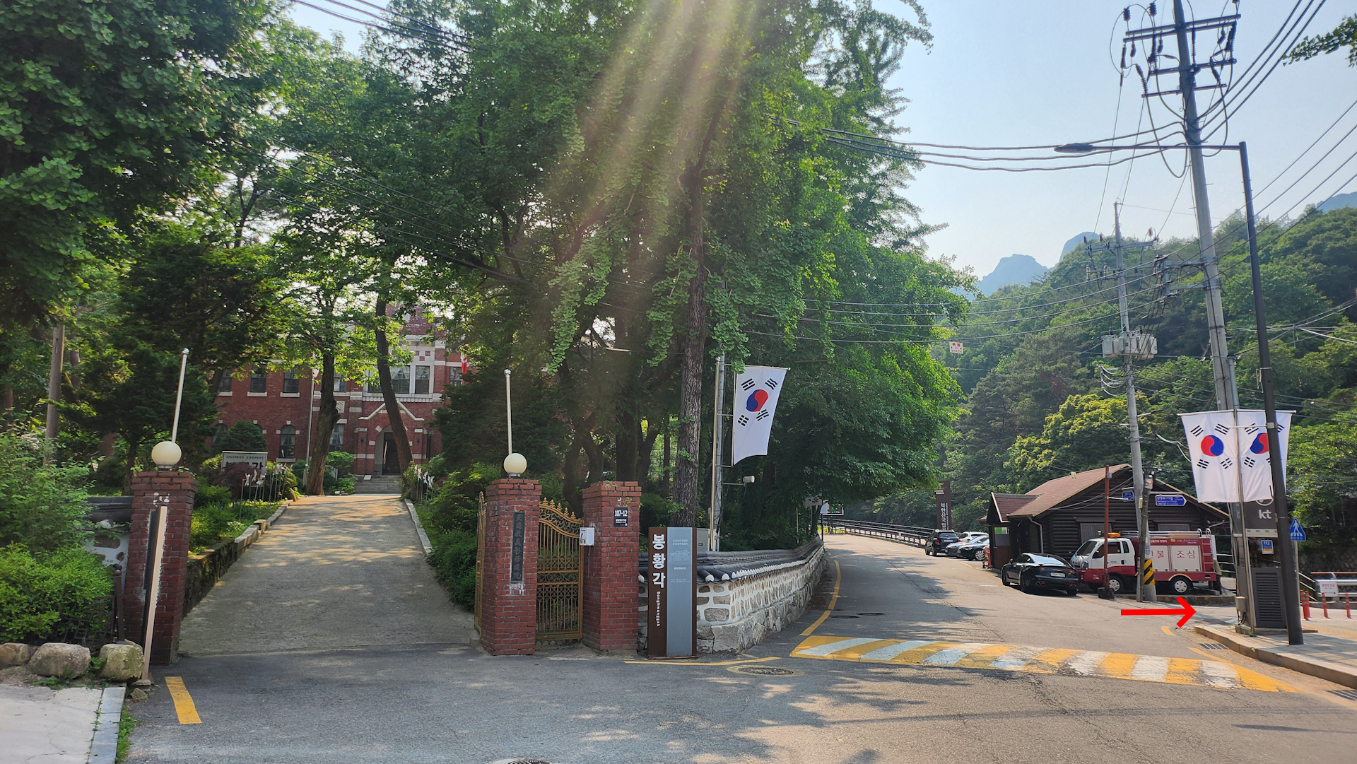 여기서 왼쪽을 바라보면 방금 지나왔던 국립통일교육원 정문을 볼 수 있습니다.