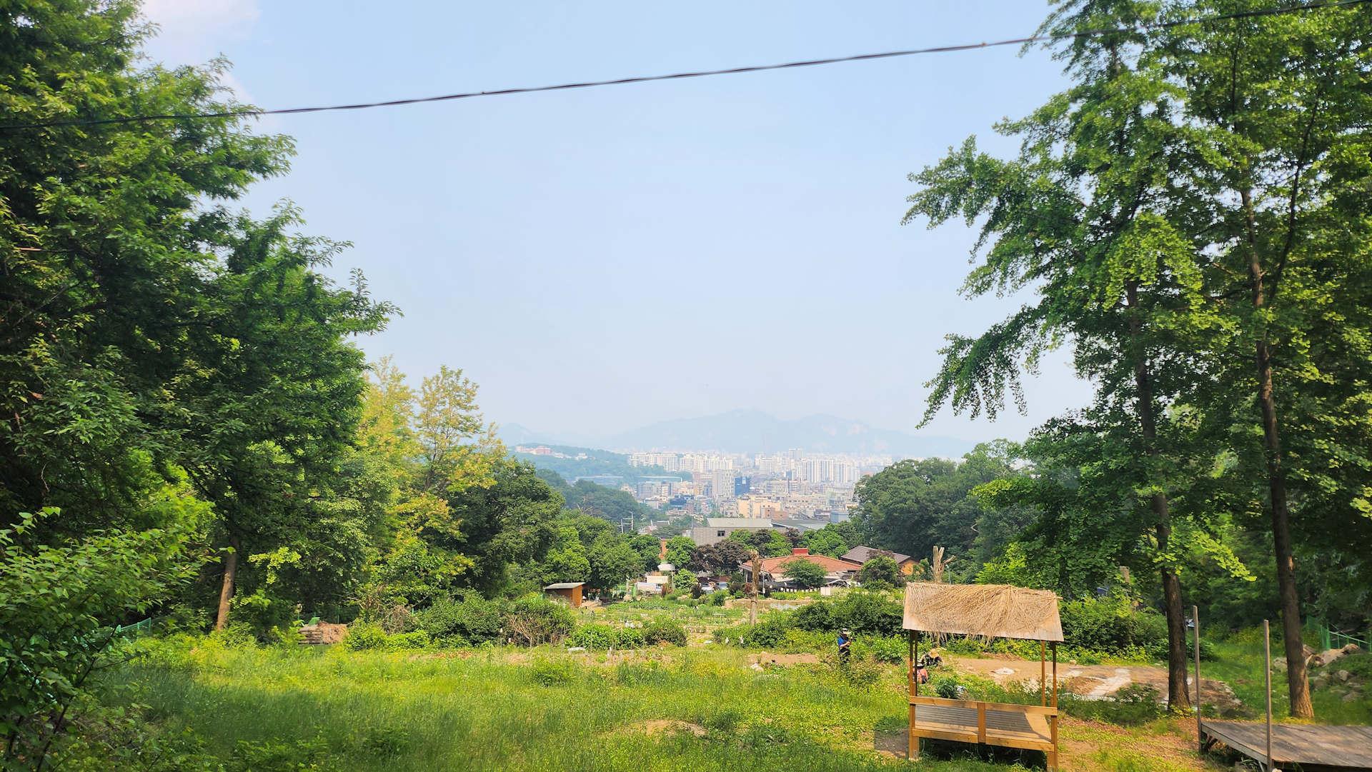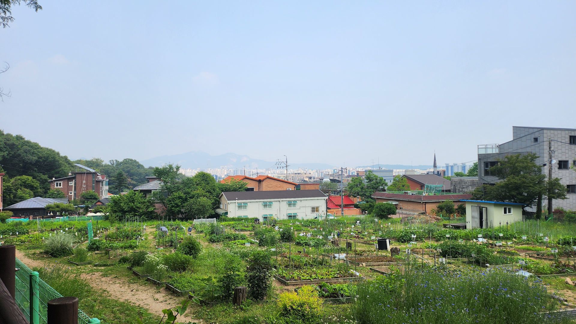 공공농장과 멀리 탁트인 도시경치가 보이는 곳도 지나갑니다.