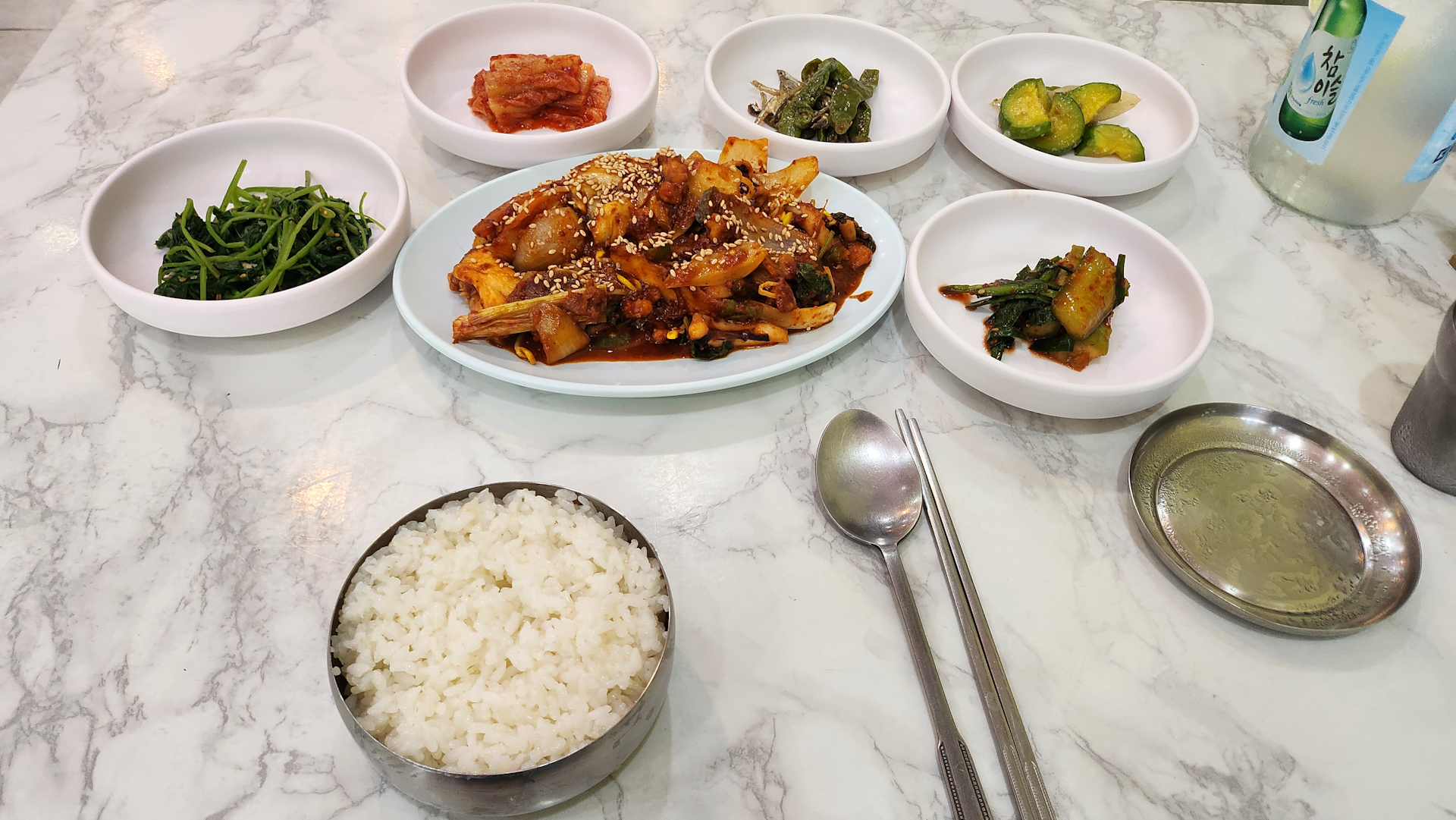 가는 길 중간에 있는 식당에 들려서 낚지볶음을 먹고 갔습니다.