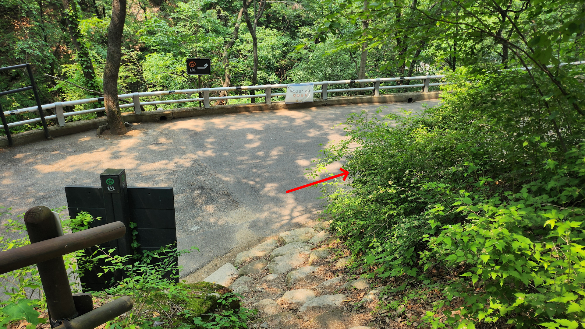 길을 따라가다 왼쪽에 보이는 산길 입구로 들어갑니다.