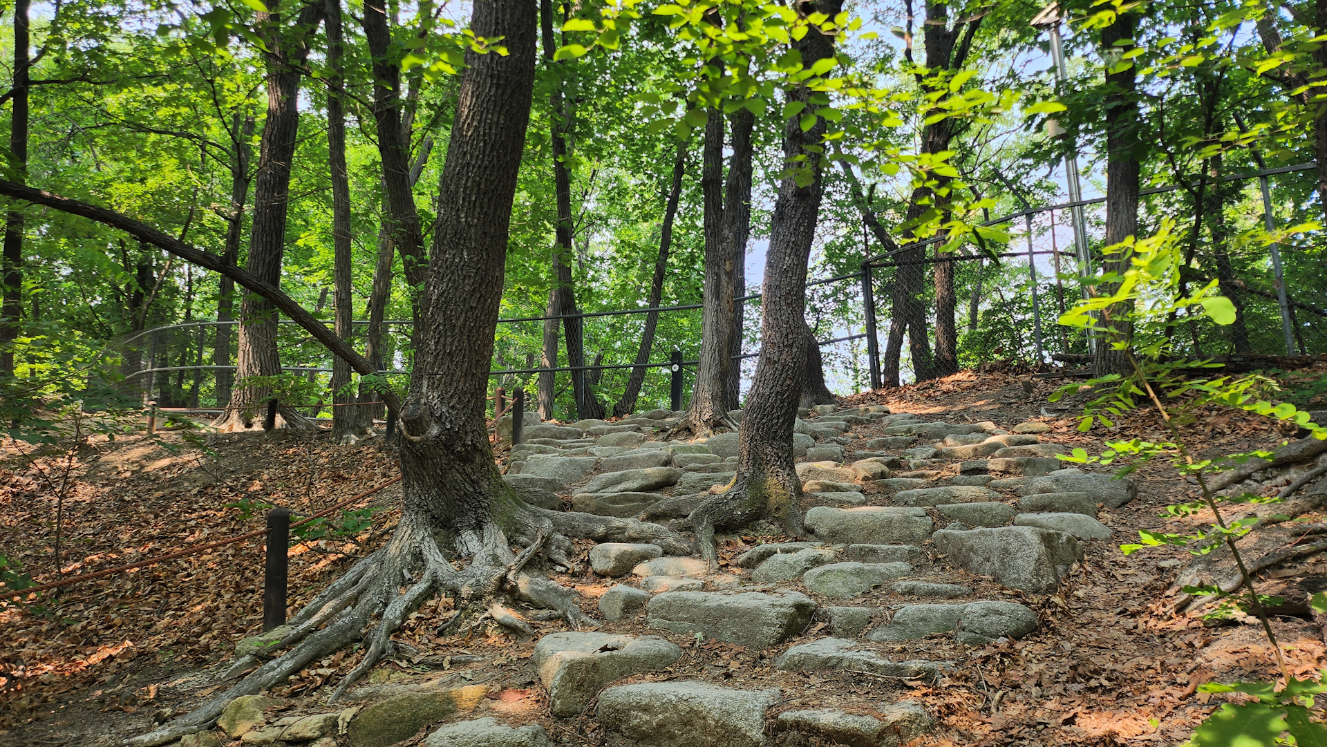길을 따라가다가 왼쪽의 계단으로 갑니다.