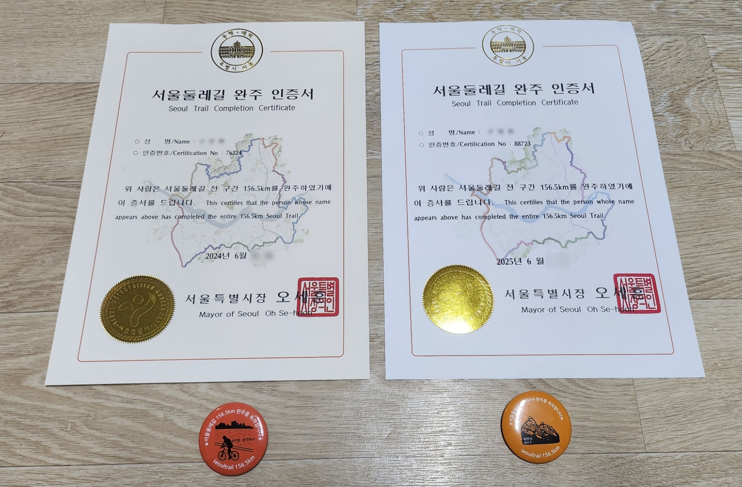 작년에 받았던 인증서와 함께 찍어봤습니다. 뱃지도 2개째 받았는데 내년에 다시 도전할 일 있으면 가방에 달고 가봐야 할 것 같습니다^^